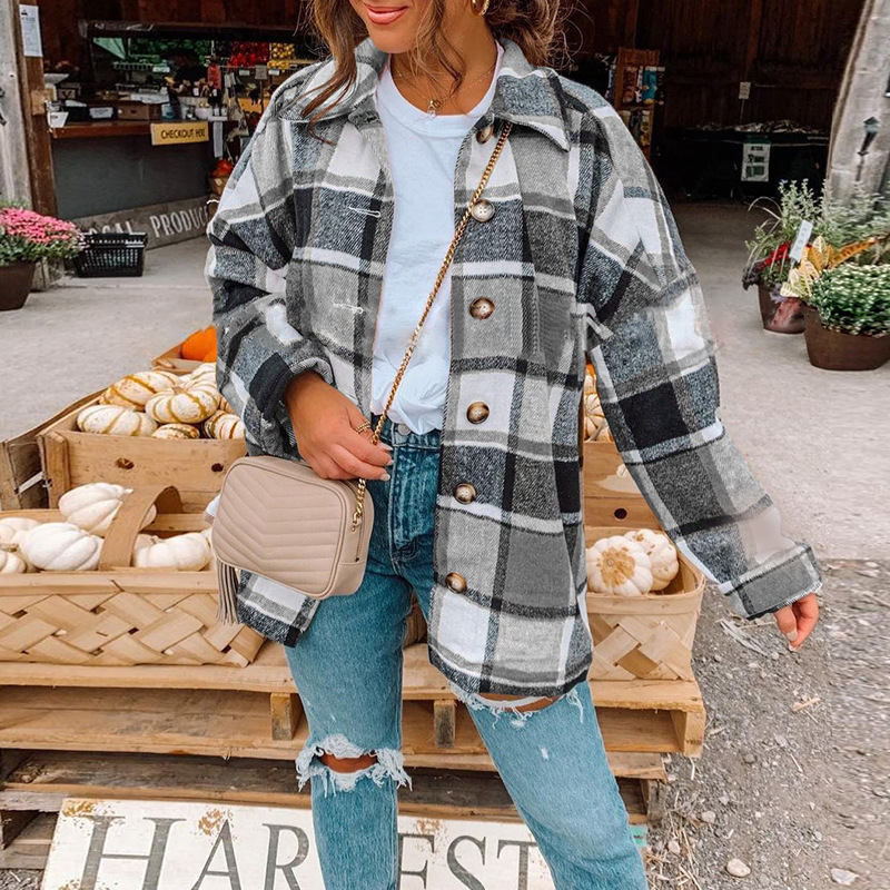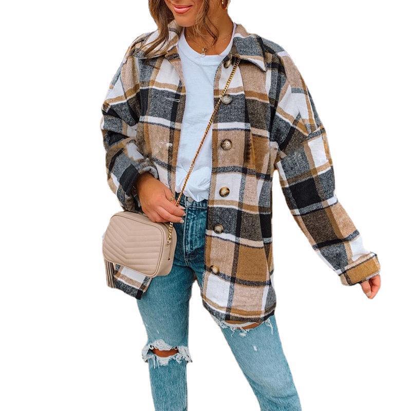 | nameOriginal | Women's 2023 New Autumn and Winter ins Internet Popular Amazon European and American Long Sleeve Lapel Loose Plaid Shirt Jacket |
