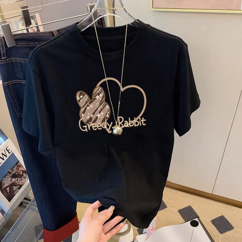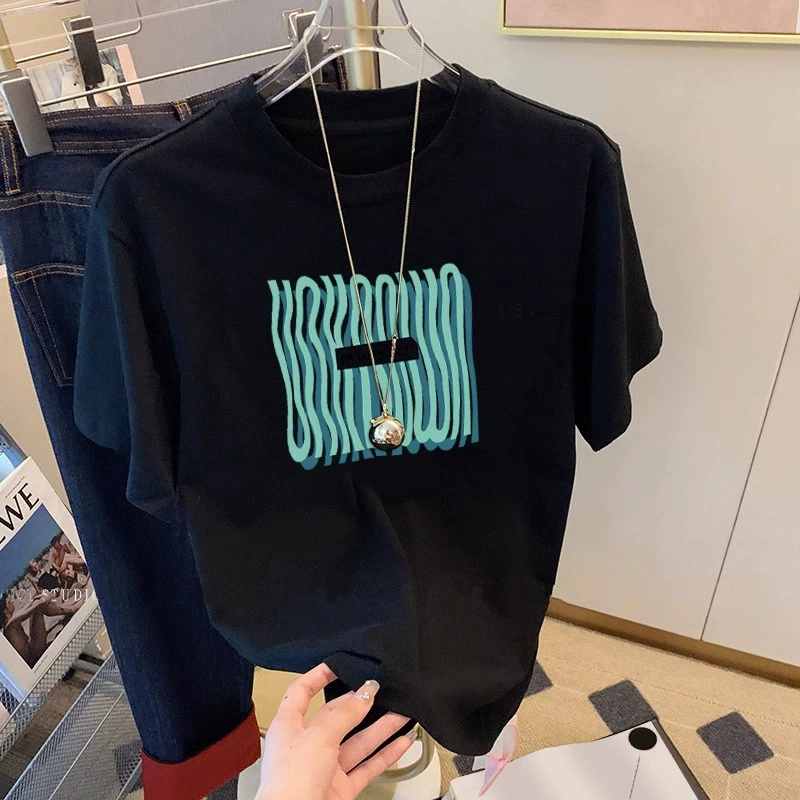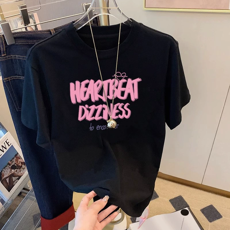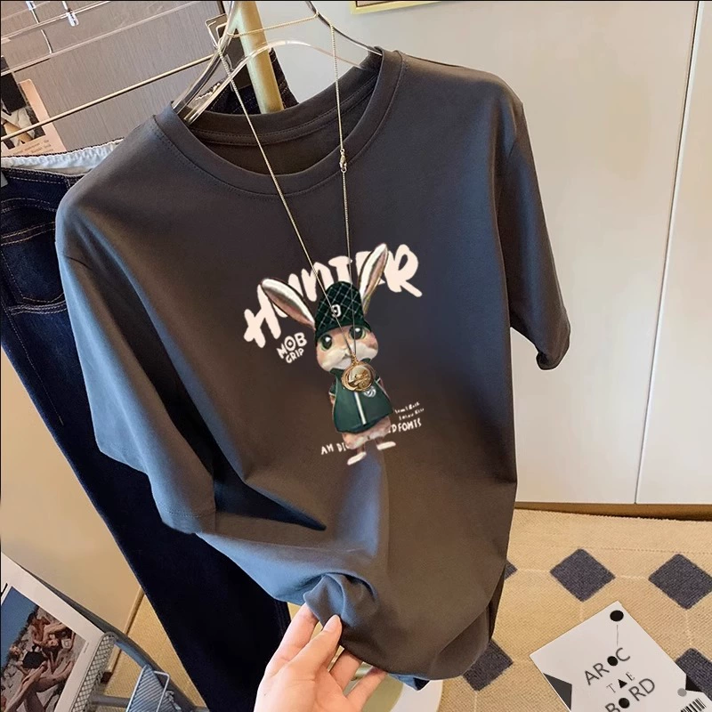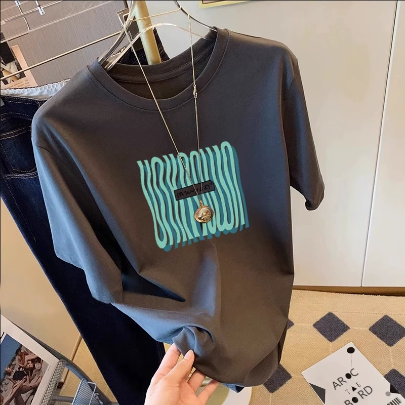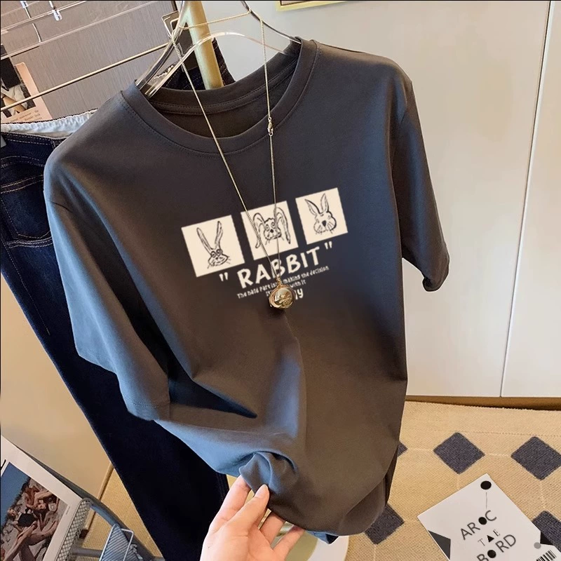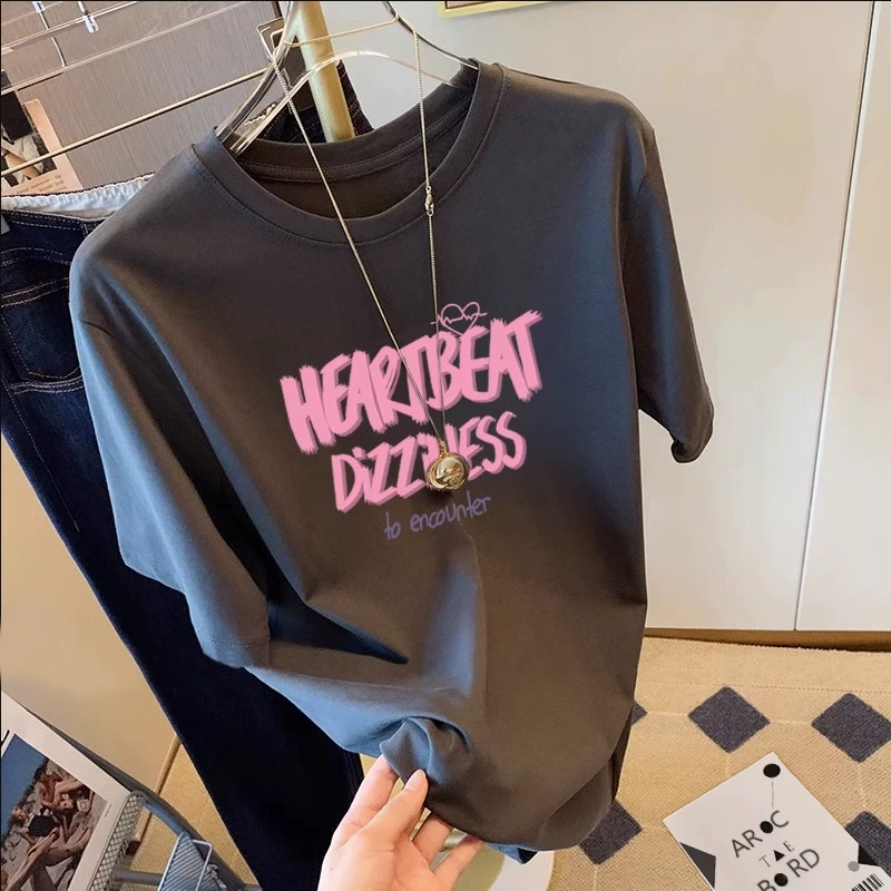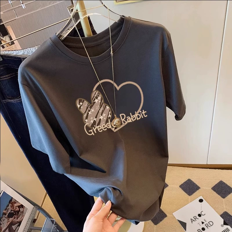 Women's 2024 new large size gray ins short-sleeved T-shirt