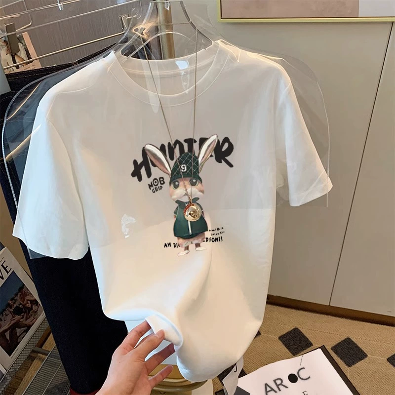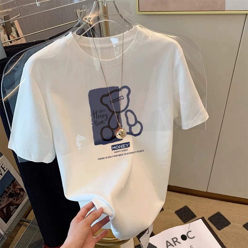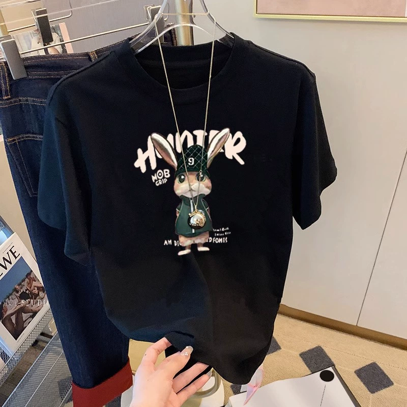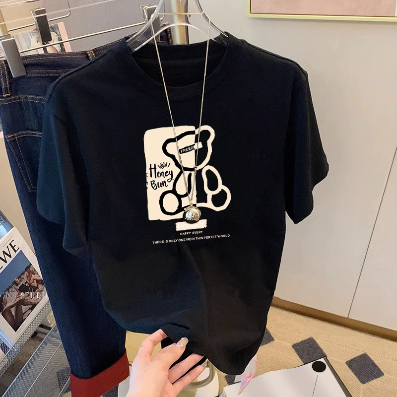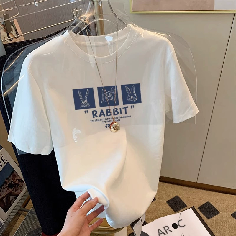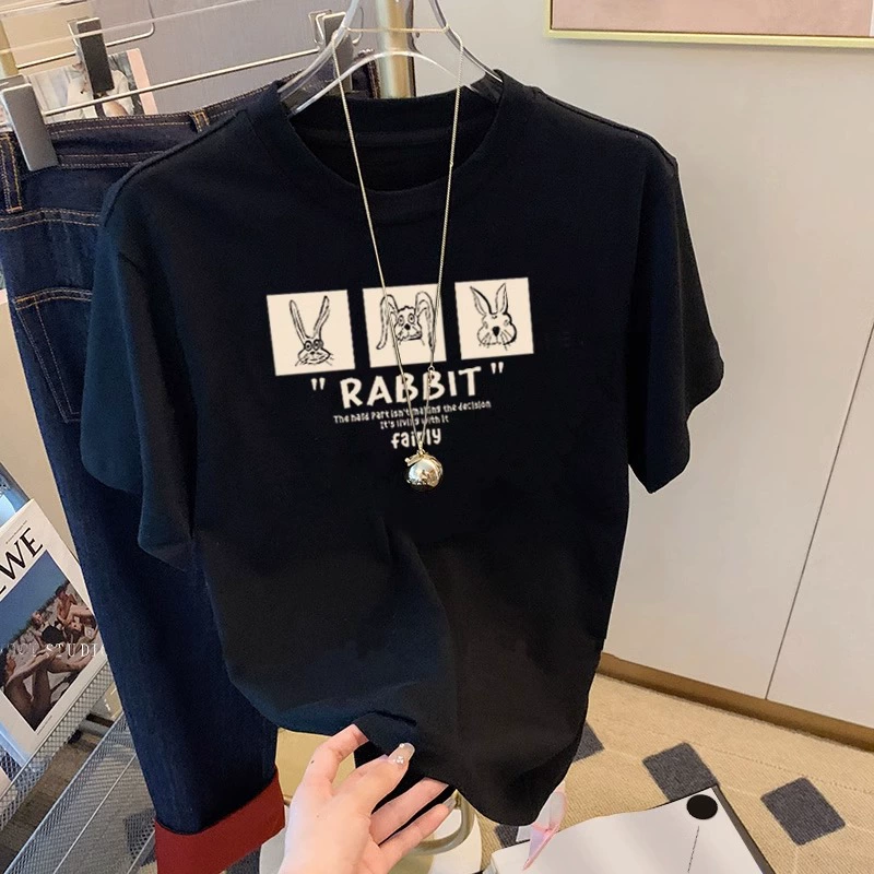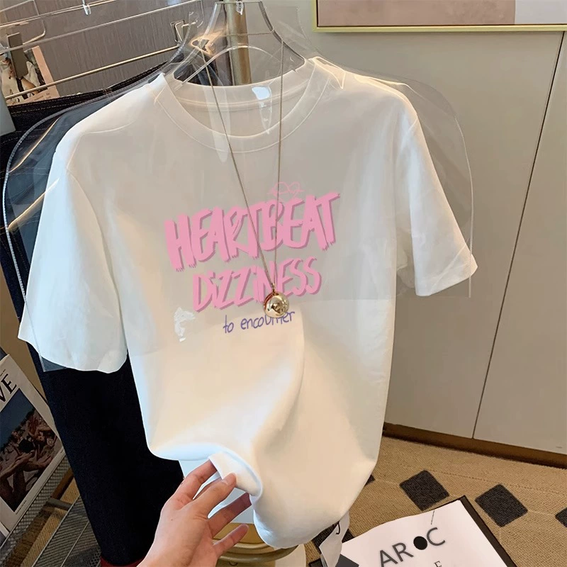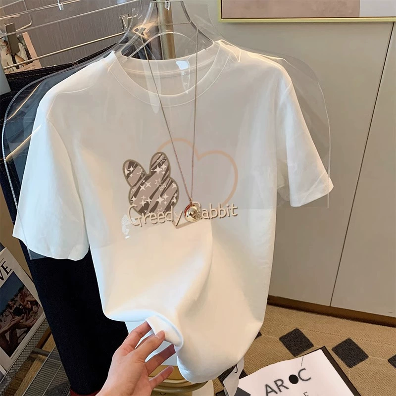 Women's 2024 new large size gray ins short-sleeved T-shirt