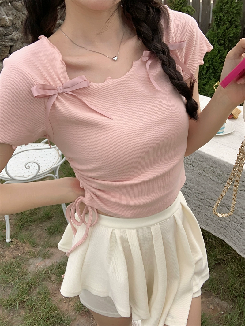 Women’s 2024 new slim bow short-sleeved T-shirt