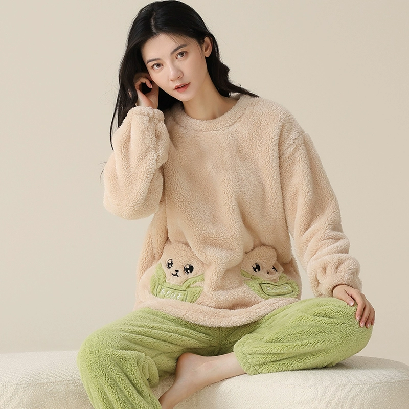 | nameOriginal | Women's all-in-one bra-free thermal flannel pajamas |
