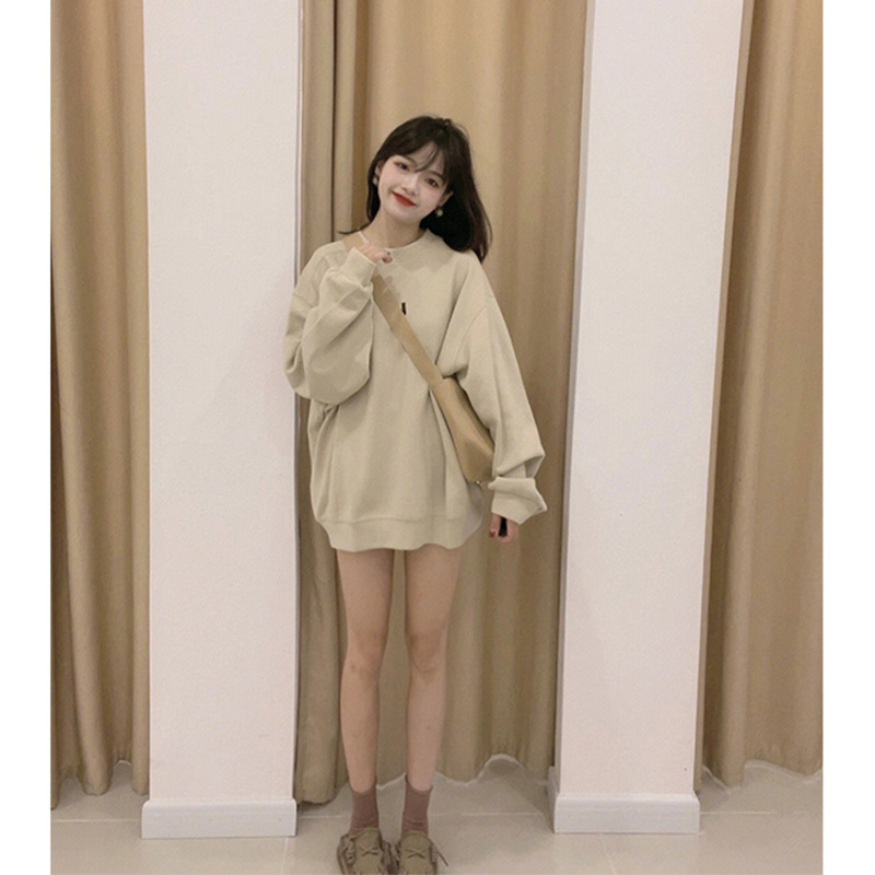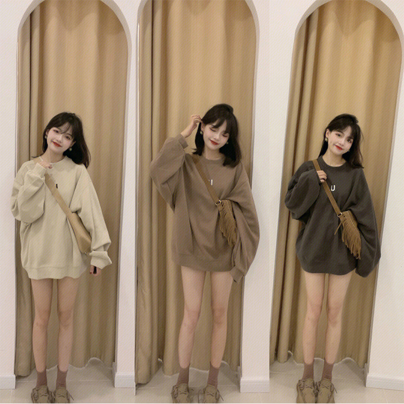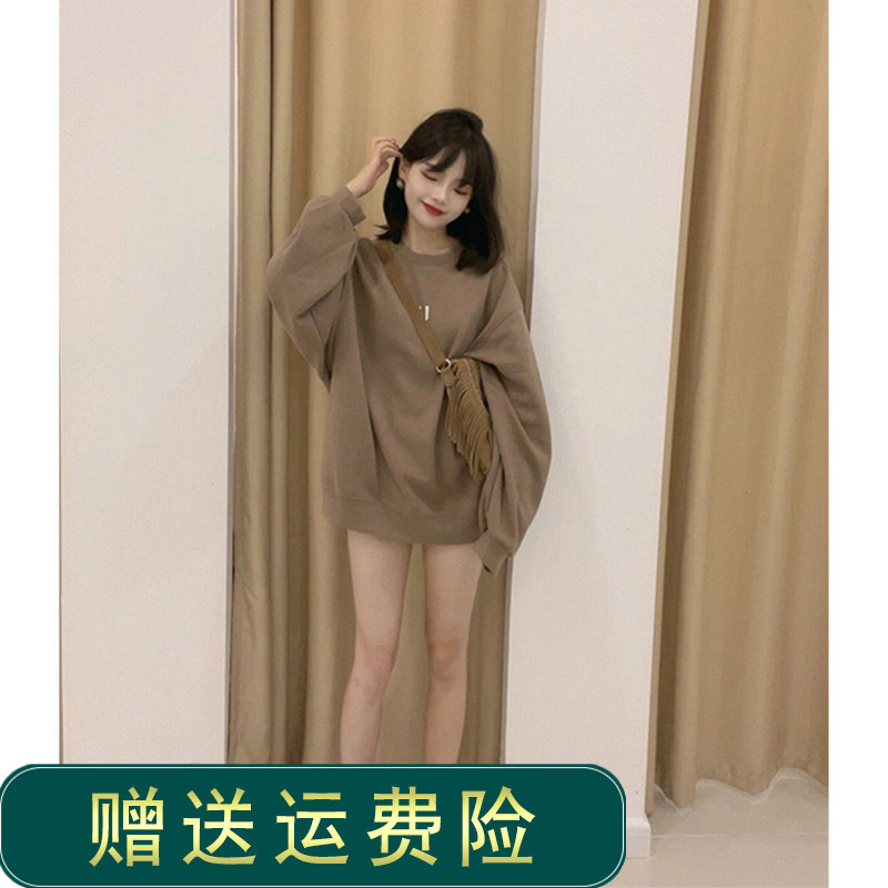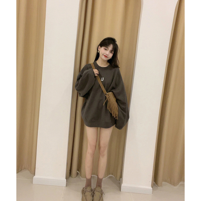 Women’s American-style Retro Mid-length Hem Covering Ass oversize Shoulder Large Loose Top for Spring and Autumn