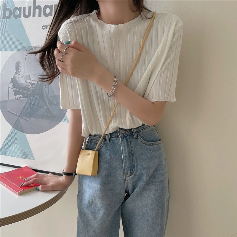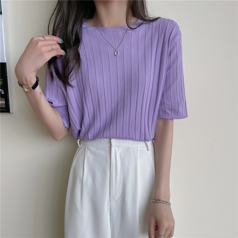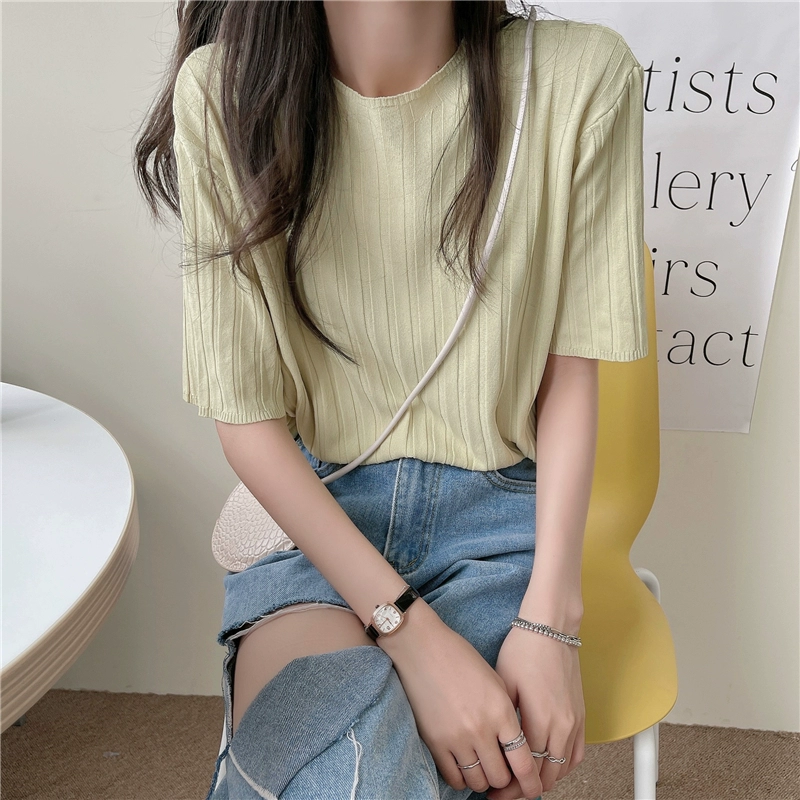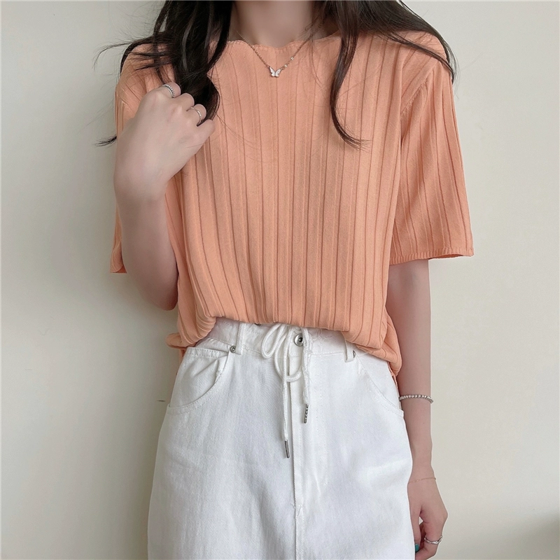 | nameOriginal | Women's apricot thin retro knitted short-sleeved T-shirt |