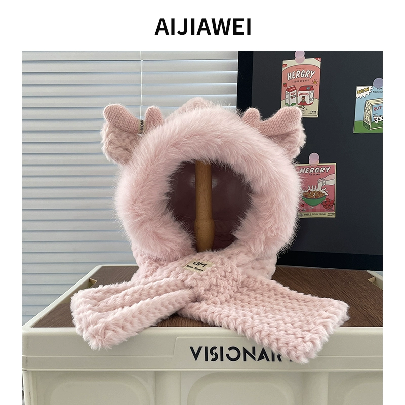 | nameOriginal | Women's autumn and winter plush scarf with one ear Lei Feng hat |