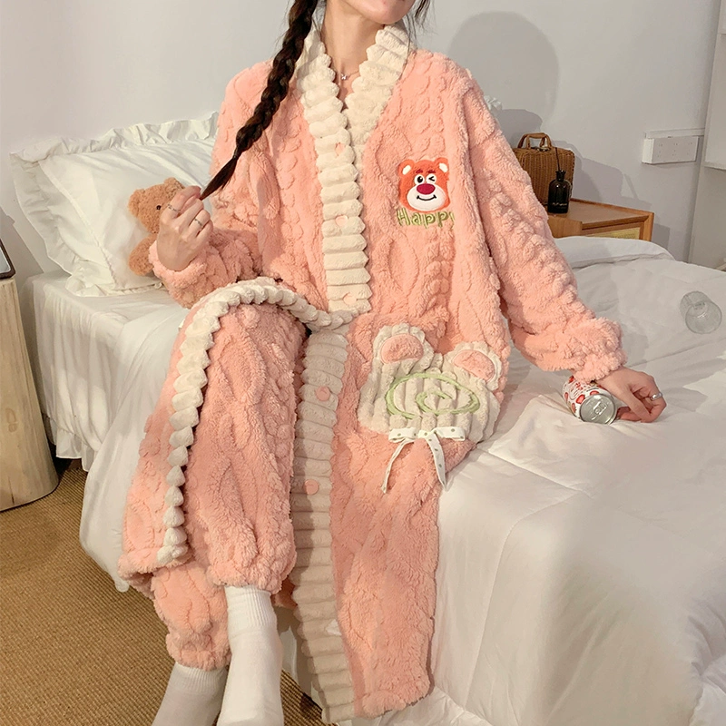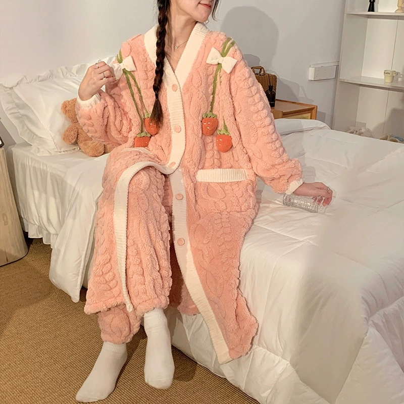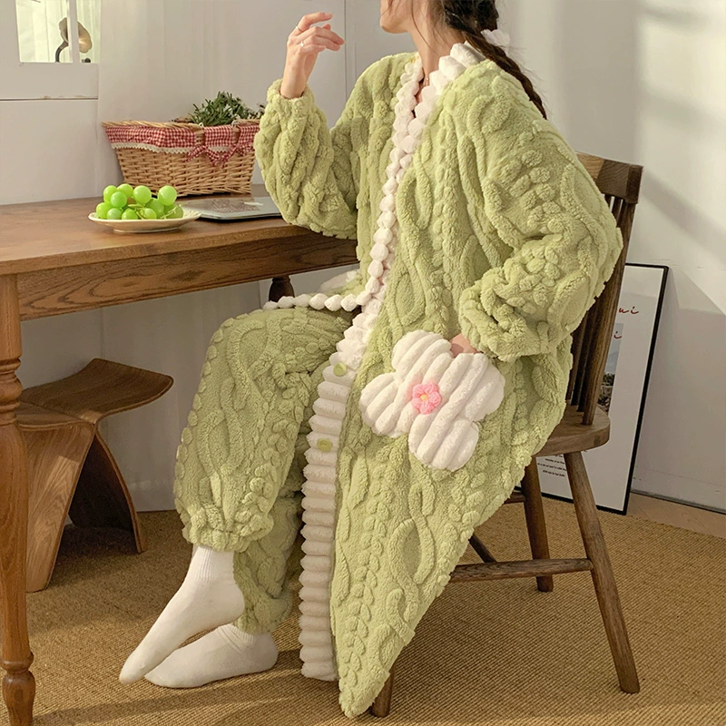 Women’s autumn and winter thickened flannel long pajamas