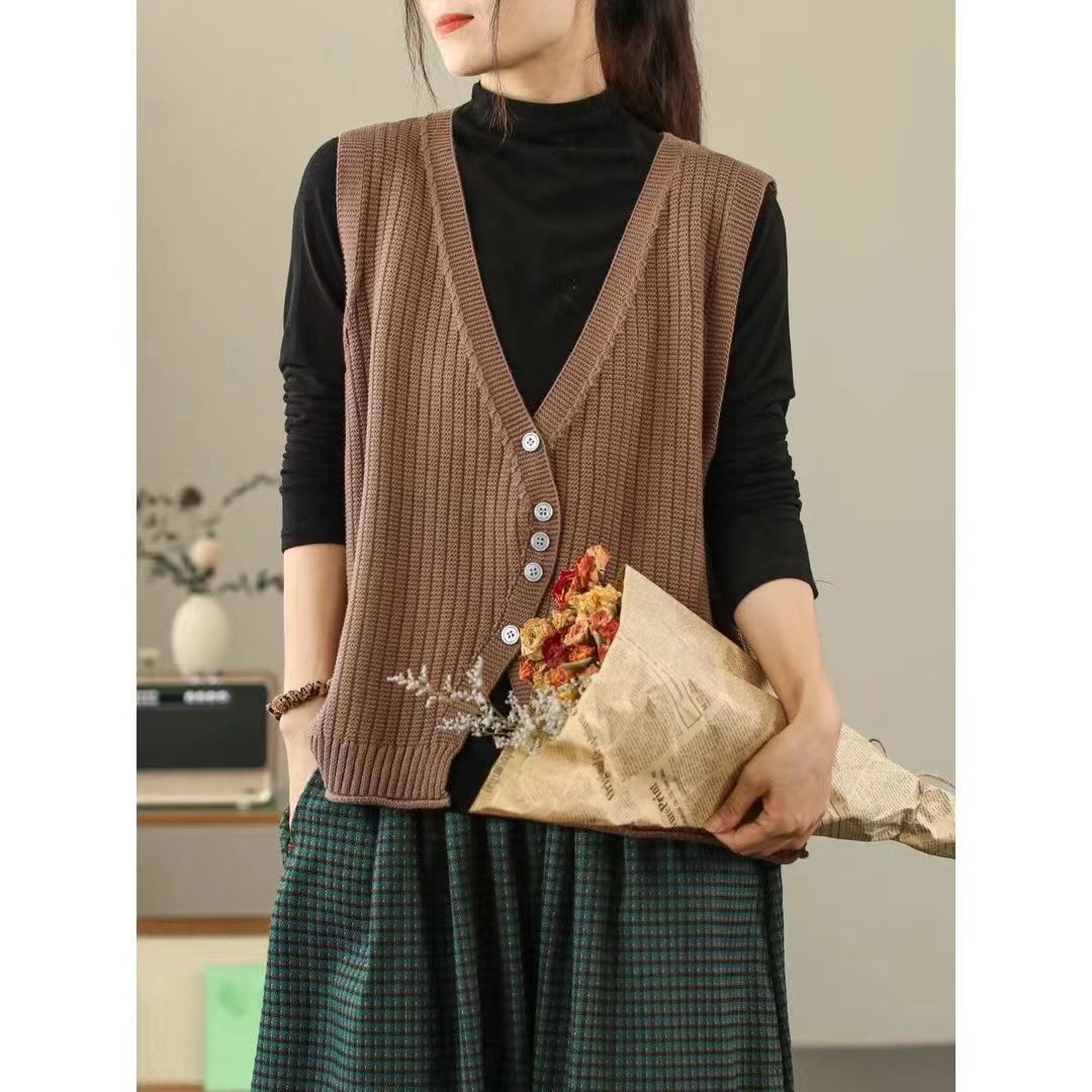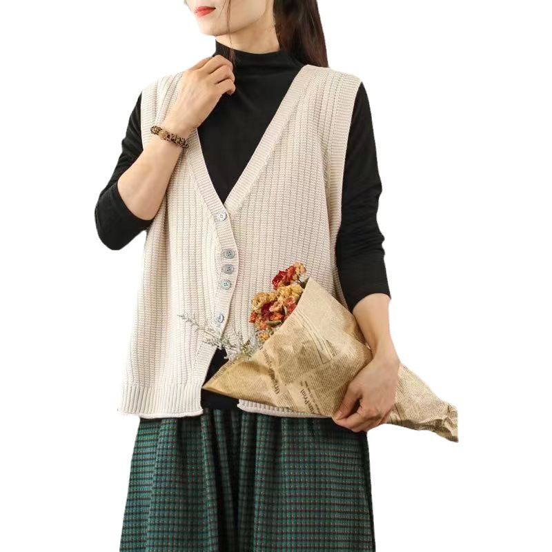 | nameOriginal | Women's Autumn New Korean-style Solid Color Sleeveless Spring and Autumn Knitted Vest plus size Loose Age-reducing V-neck Vest for Women |