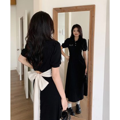 | nameOriginal | Women's Backless Bow Summer Little Black Dress Short Sleeves |