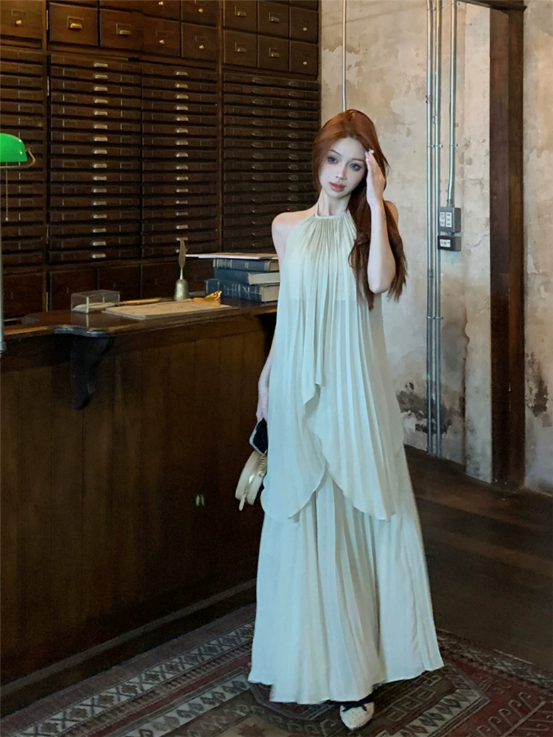 | nameOriginal | Women's backless summer pleated skirt two-piece halterneck set |