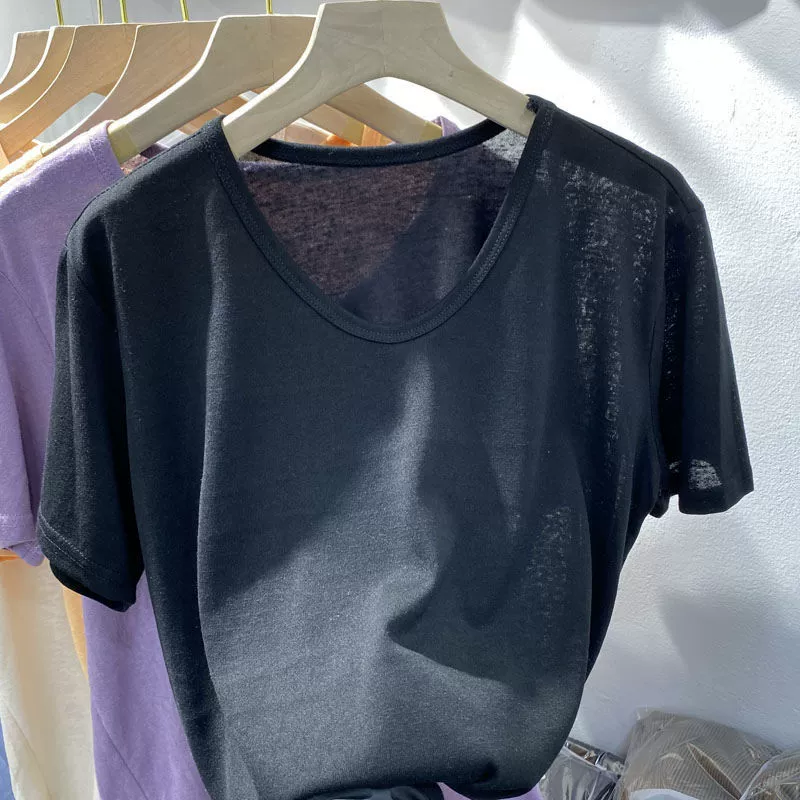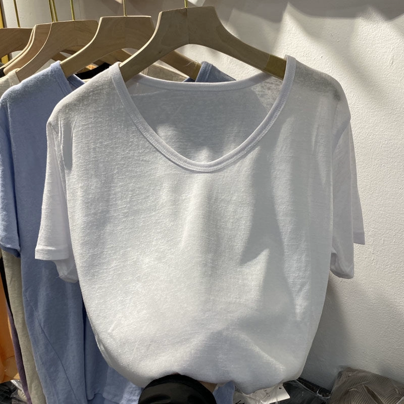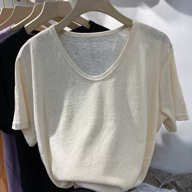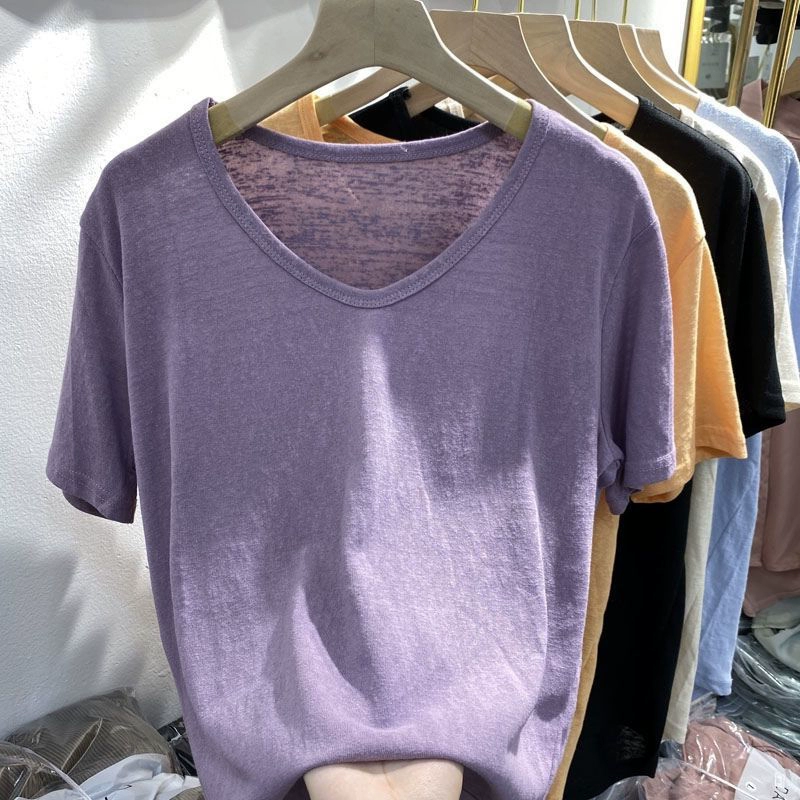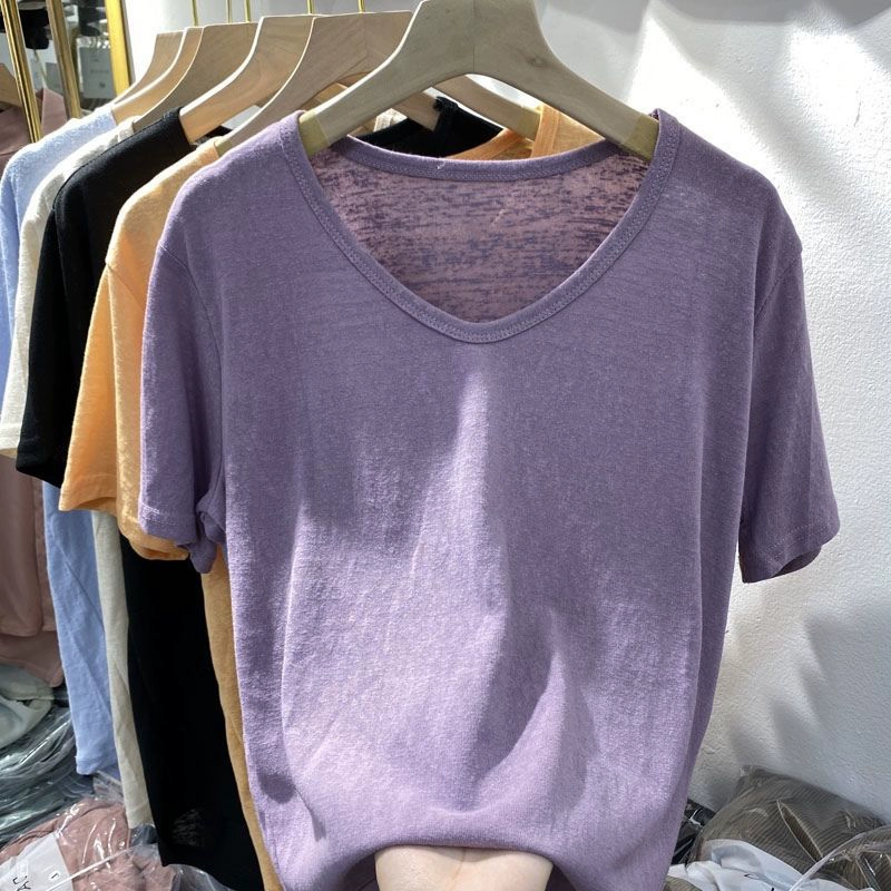 | nameOriginal | Women's bamboo cotton belly-covering slimming linen short-sleeved T-shirt |