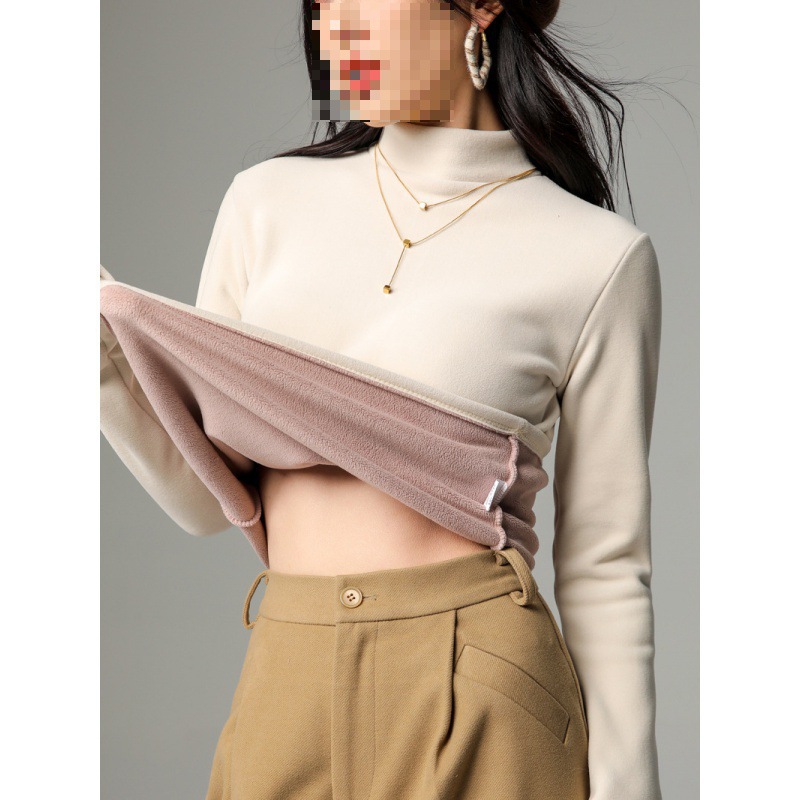 | nameOriginal | Women's Base Fleece-lined Base Shirt Women's Inner Thickened 2024 New White Fleece Half-high Collar Long-sleeved T-shirt Top |