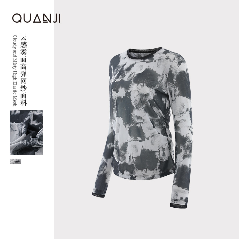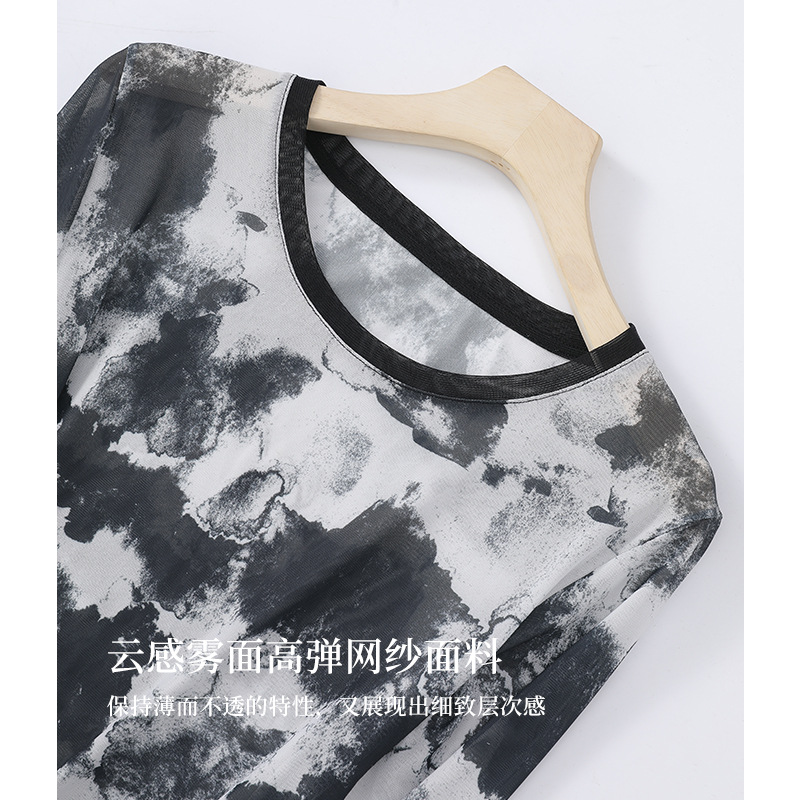 Women’s Base Shirt Long-sleeved Thin Summer New Ultra-thin Niche Trendy Brand Contrast Color Stretch Printed Mesh Base Shirt