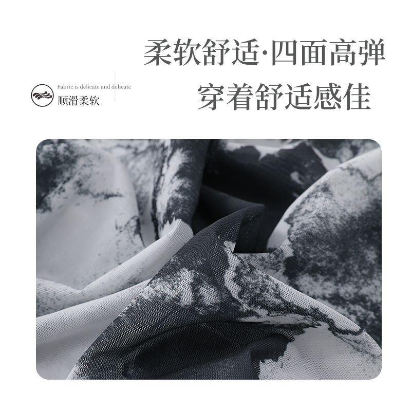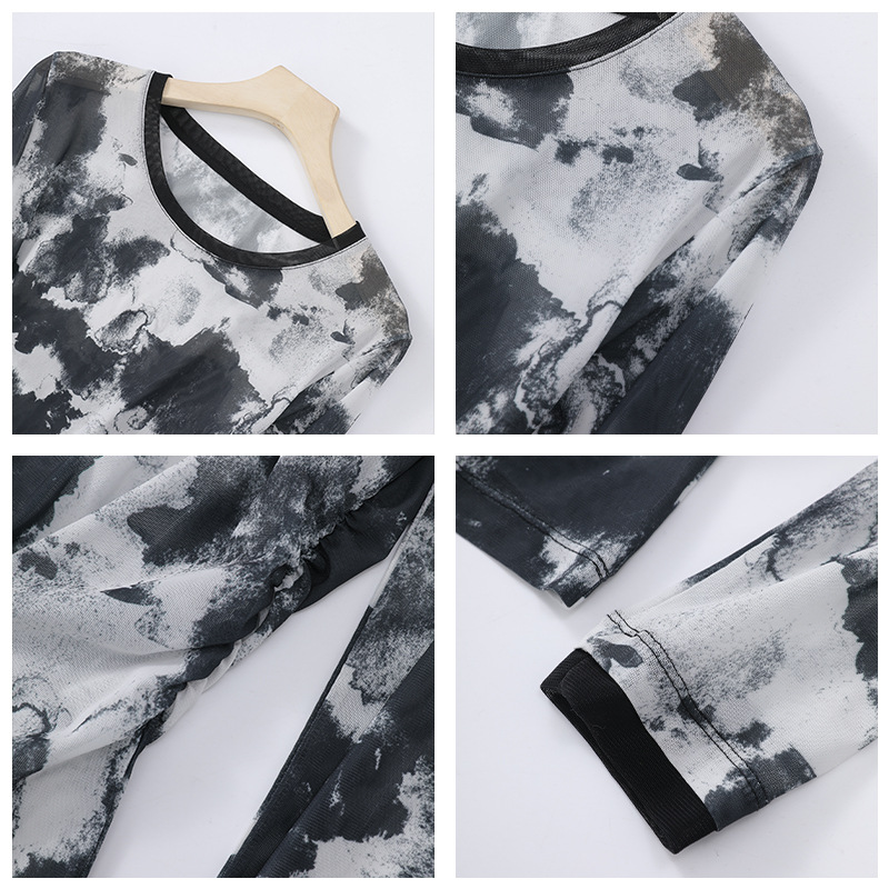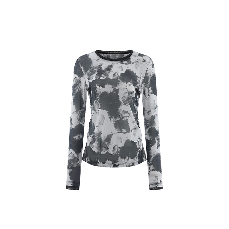 Women's Base Shirt Long-sleeved Thin Summer New Ultra-thin Niche Trendy Brand Contrast Color Stretch Printed Mesh Base Shirt
