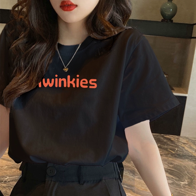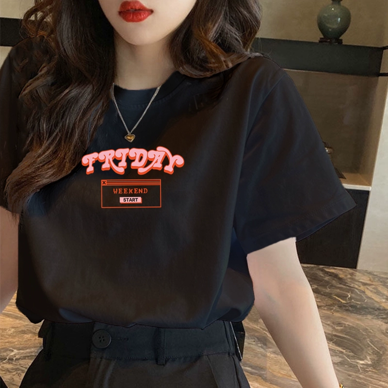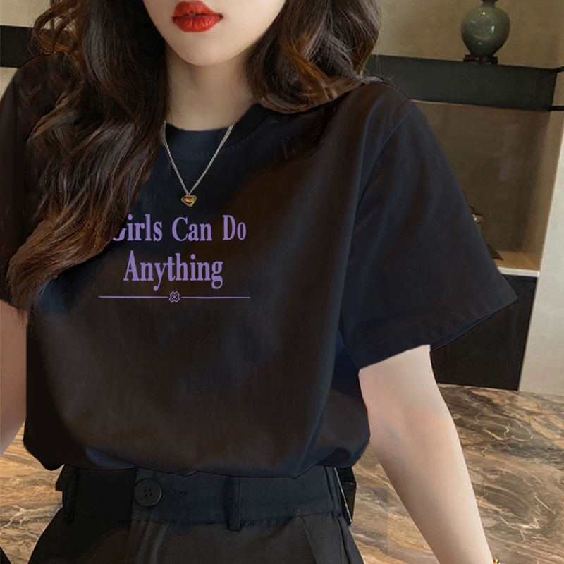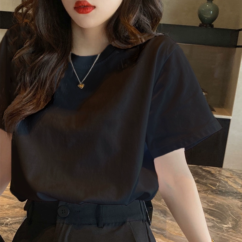 | nameOriginal | Women's black loose round neck top short sleeve t-shirt |