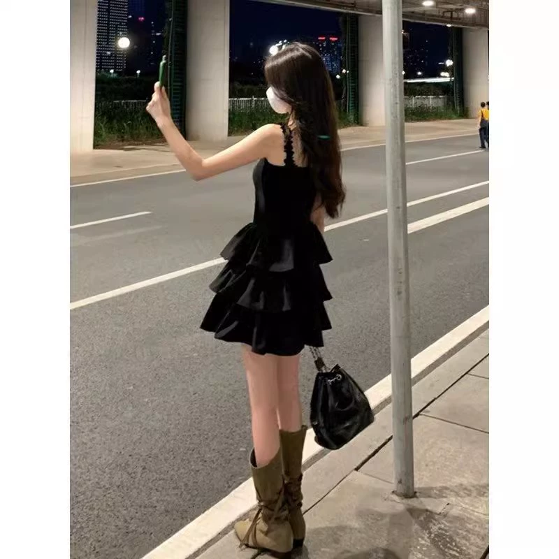 | nameOriginal | Women's black tube top A-line skirt niche slim fit suspender belt |