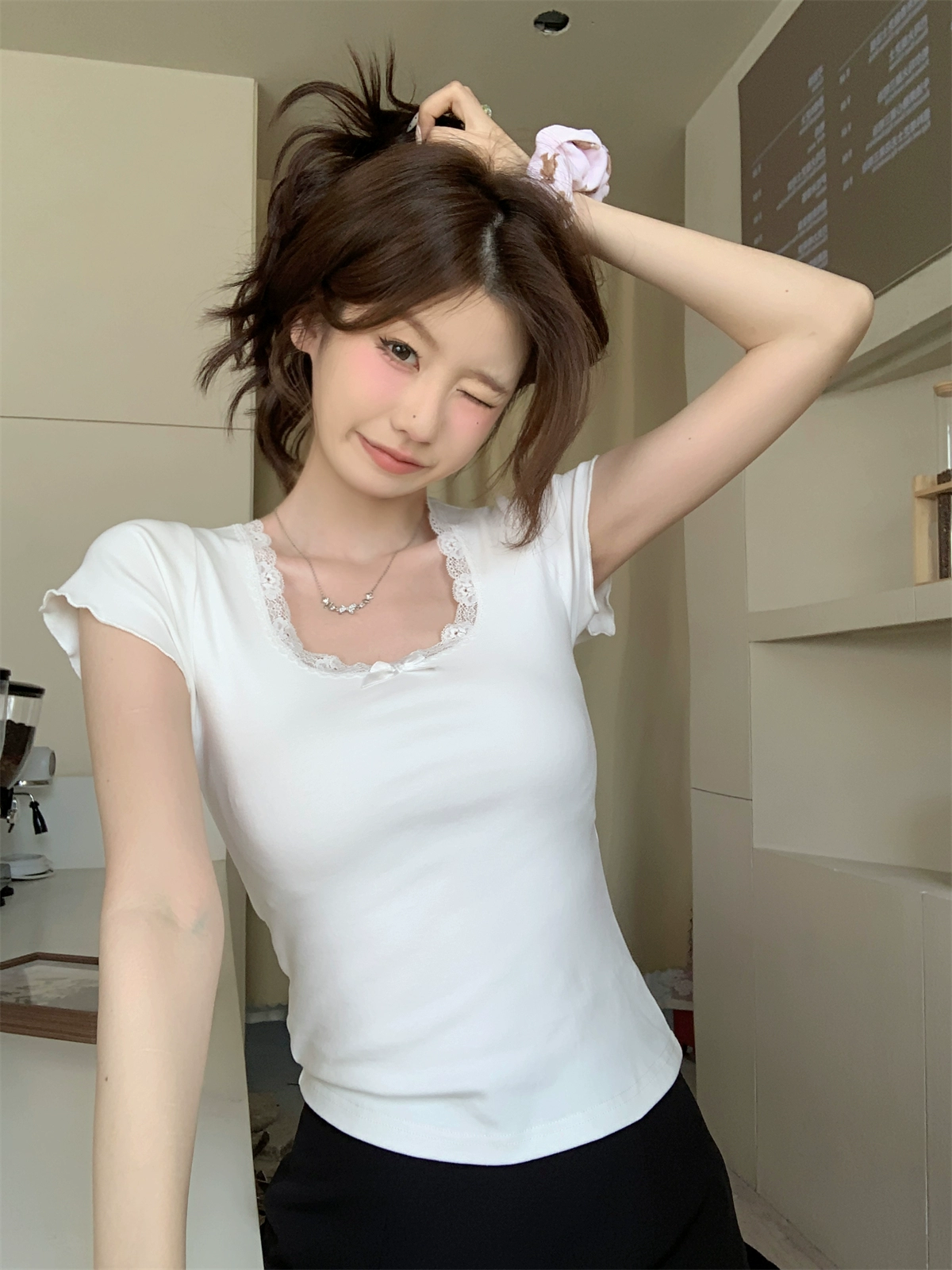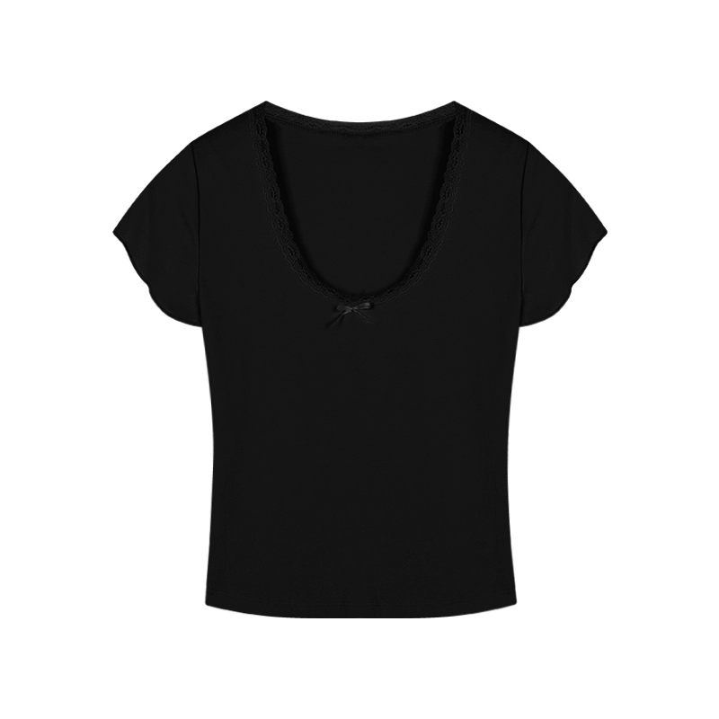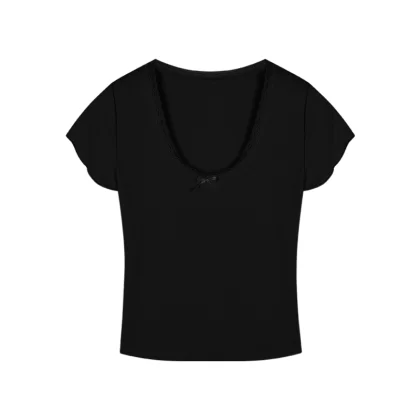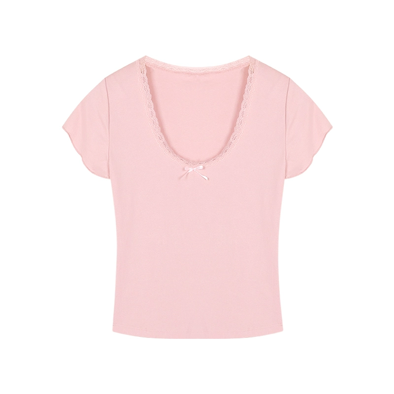 Women's Bow Short Sleeve Summer Slim Lace Trim