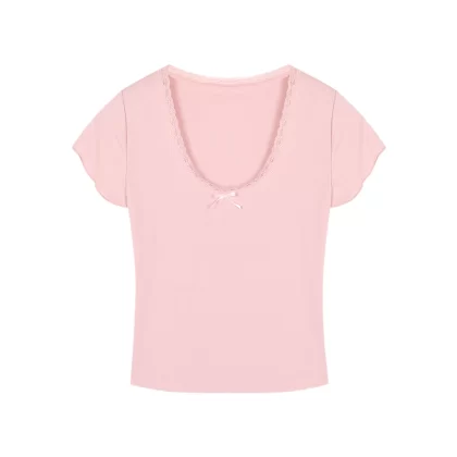 Women’s Bow Short Sleeve Summer Slim Lace Trim