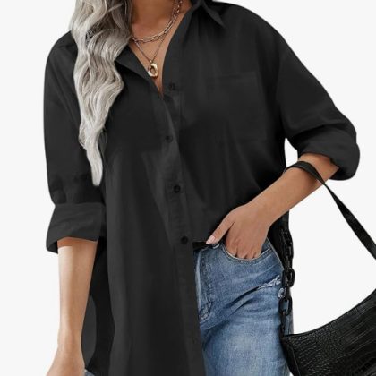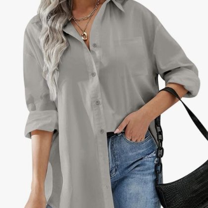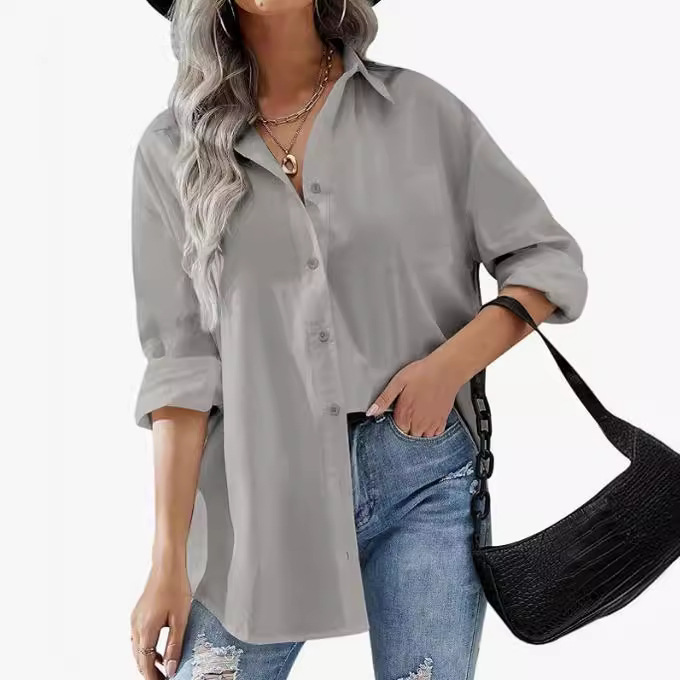 | nameOriginal | Women's button shirt Amazon new boyfriend-style formal shirt office off-shoulder oversized shirt long sleeve |