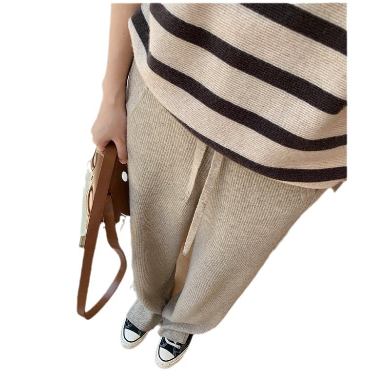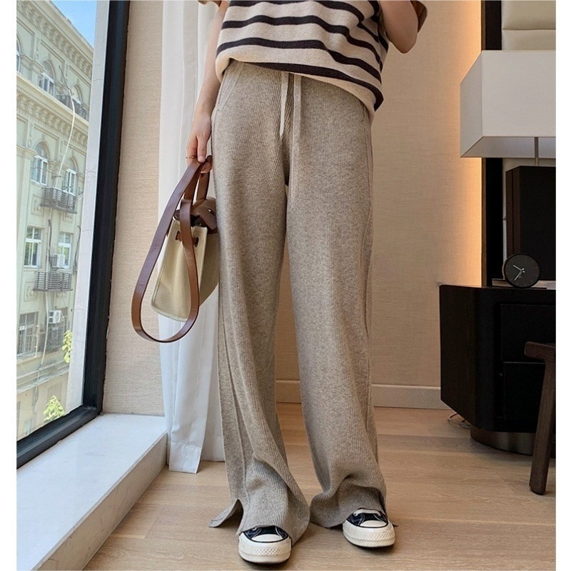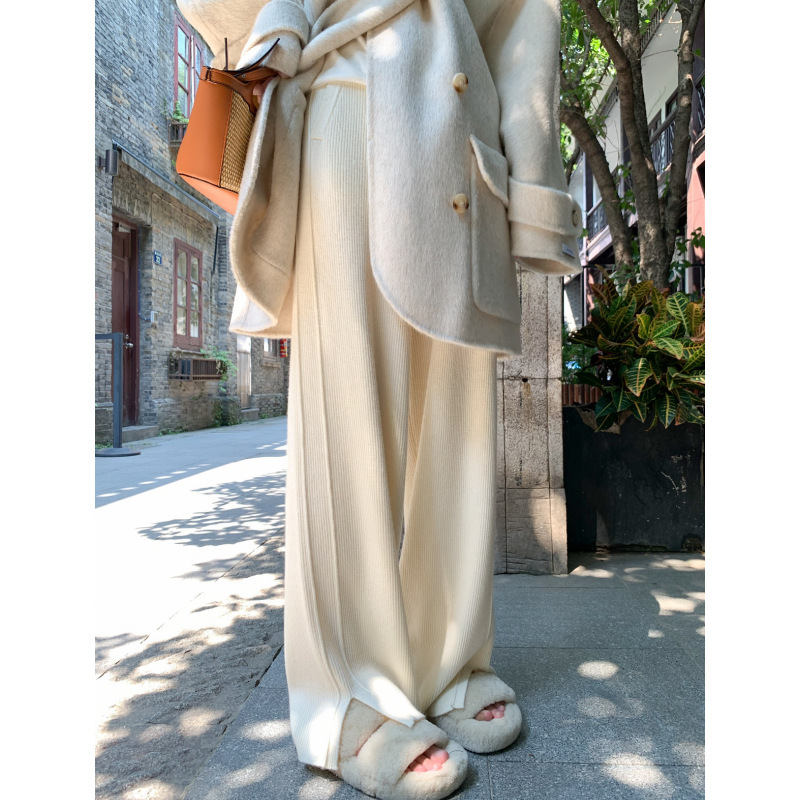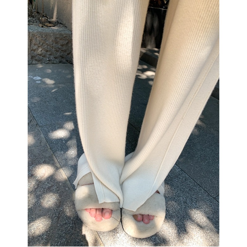 | nameOriginal | Women's cashmere straight pants spring, autumn and winter high waist pants lazy style loose split knitted glutinous rice pants for women |