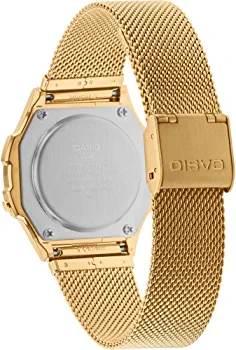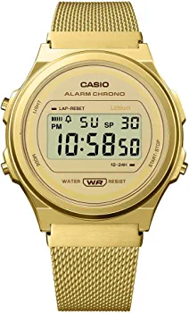 Introducing the Casio A171WEMG-9AEF Vintage Collection Digital Watch for Women’s in Gold. This watch is the perfect blend of classic and modern design, making it a must-have accessory for any fashion-forward woman. The gold-tone stainless steel band and case give it a luxurious look, while the digital display adds a contemporary touch. The watch features a stopwatch, alarm, and calendar, making it a practical choice for everyday wear. The vintage-inspired design is sure to turn heads and make a statement. Whether you’re dressing up for a special occasion or running errands, this watch is the perfect accessory to complete your look. Don’t miss out on this timeless piece from Casio’s Vintage Collection.