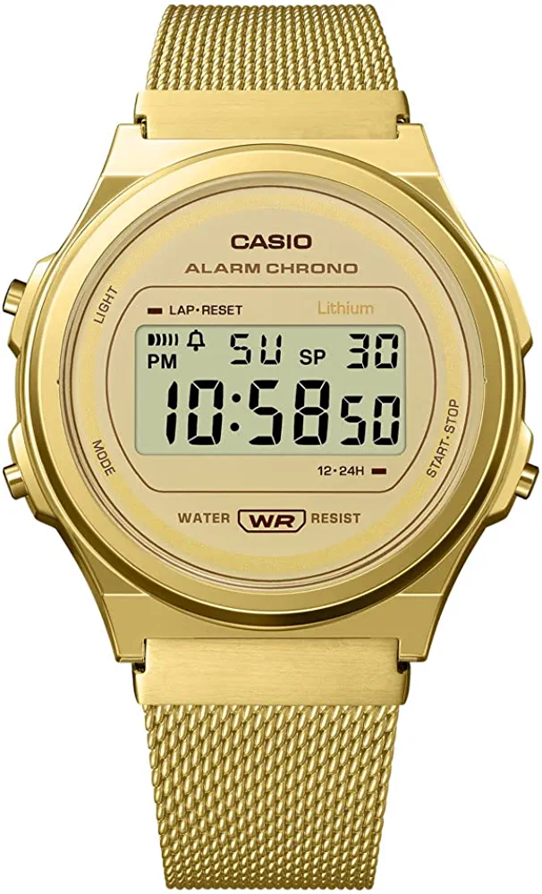 Women’s Casio Vintage Collection Digital Watch in Gold (A171WEMG-9AEF).