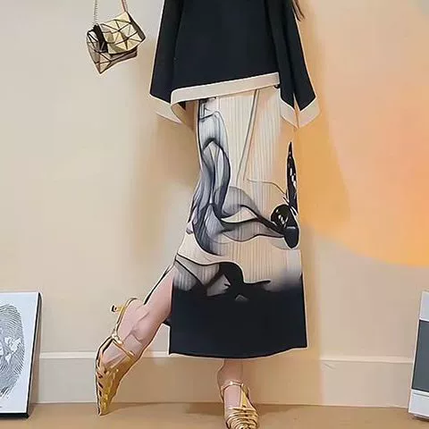 | nameOriginal | Women's casual printed skirt two-piece ink set |