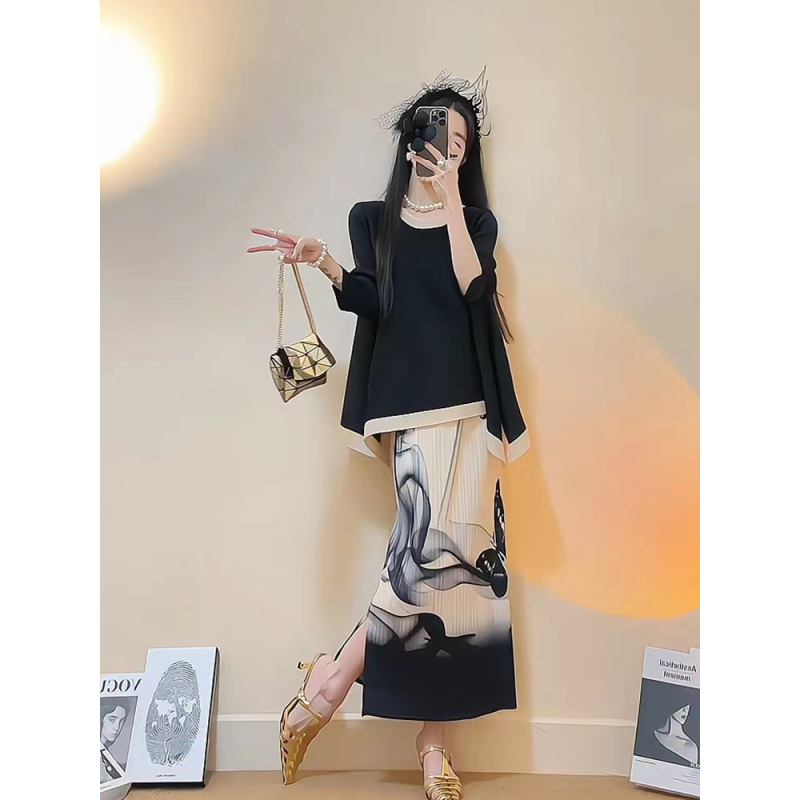 | nameOriginal | Women's casual printed skirt two-piece ink set |