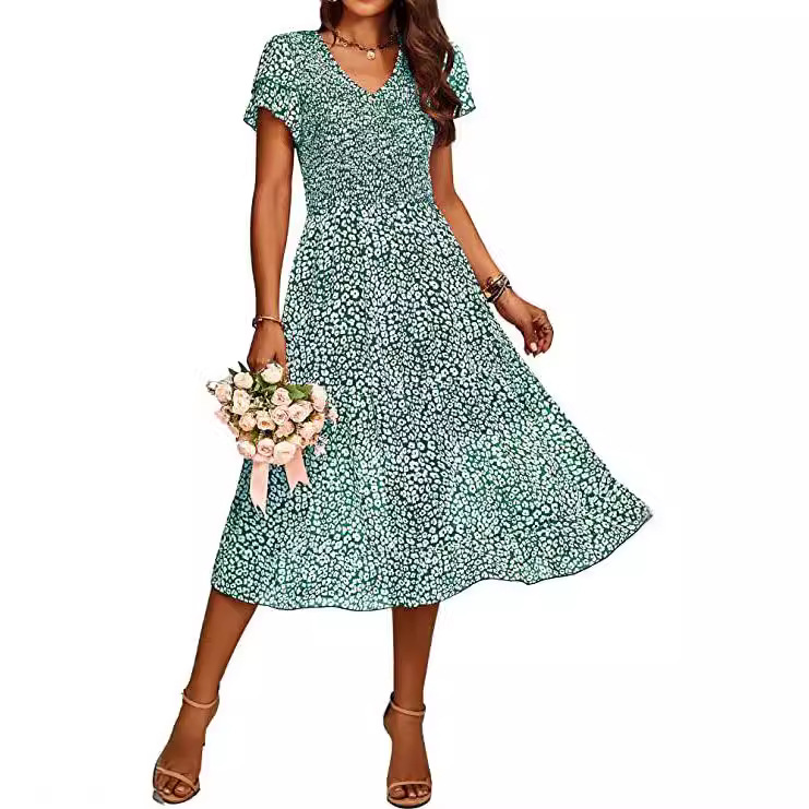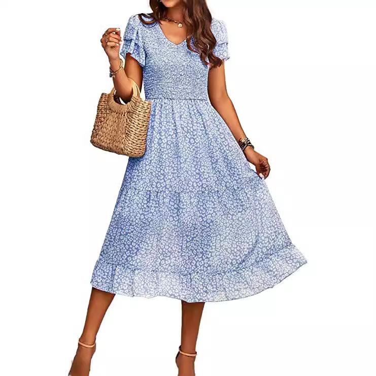 | nameOriginal | Women's Casual Summer Short Ruffled Layered Sleeve Pleated Midi Dress Bohemian Floral V |