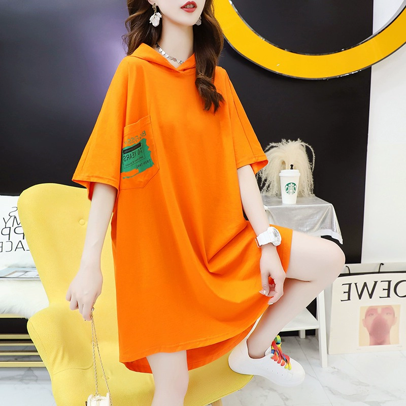 | nameOriginal | Women's casual t-shirt dress large version age-reducing top short sleeves |