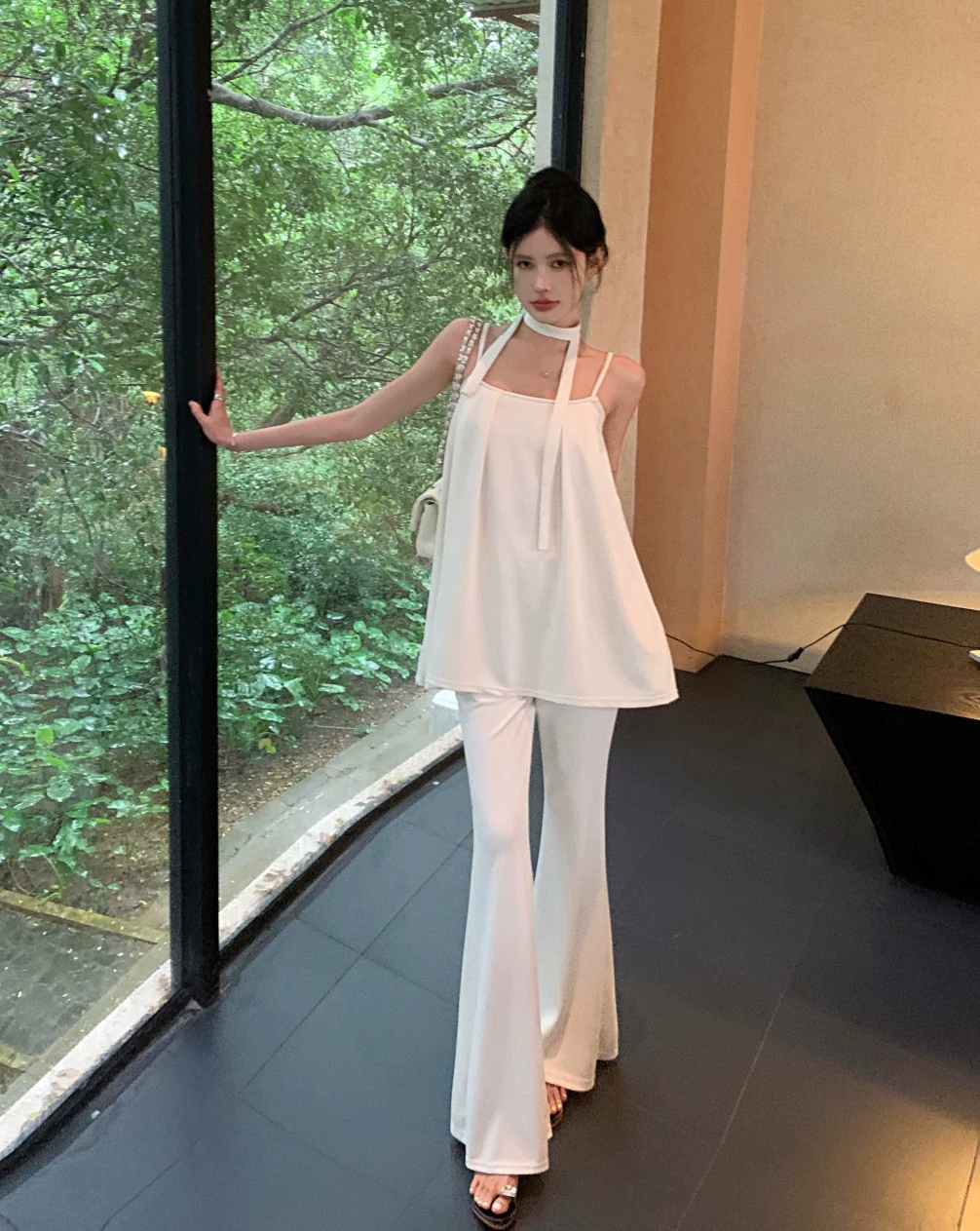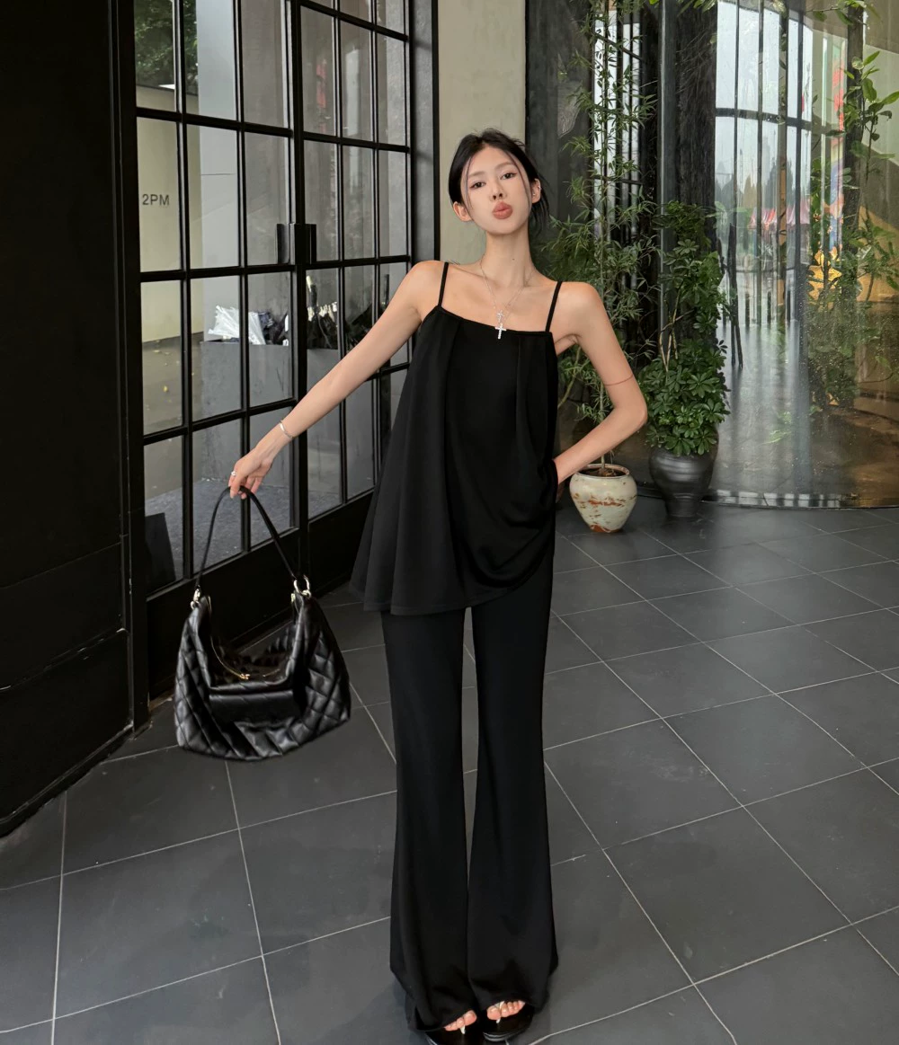 | nameOriginal | Women's chic outer wear casual two-piece suspender set with slight bootcut |