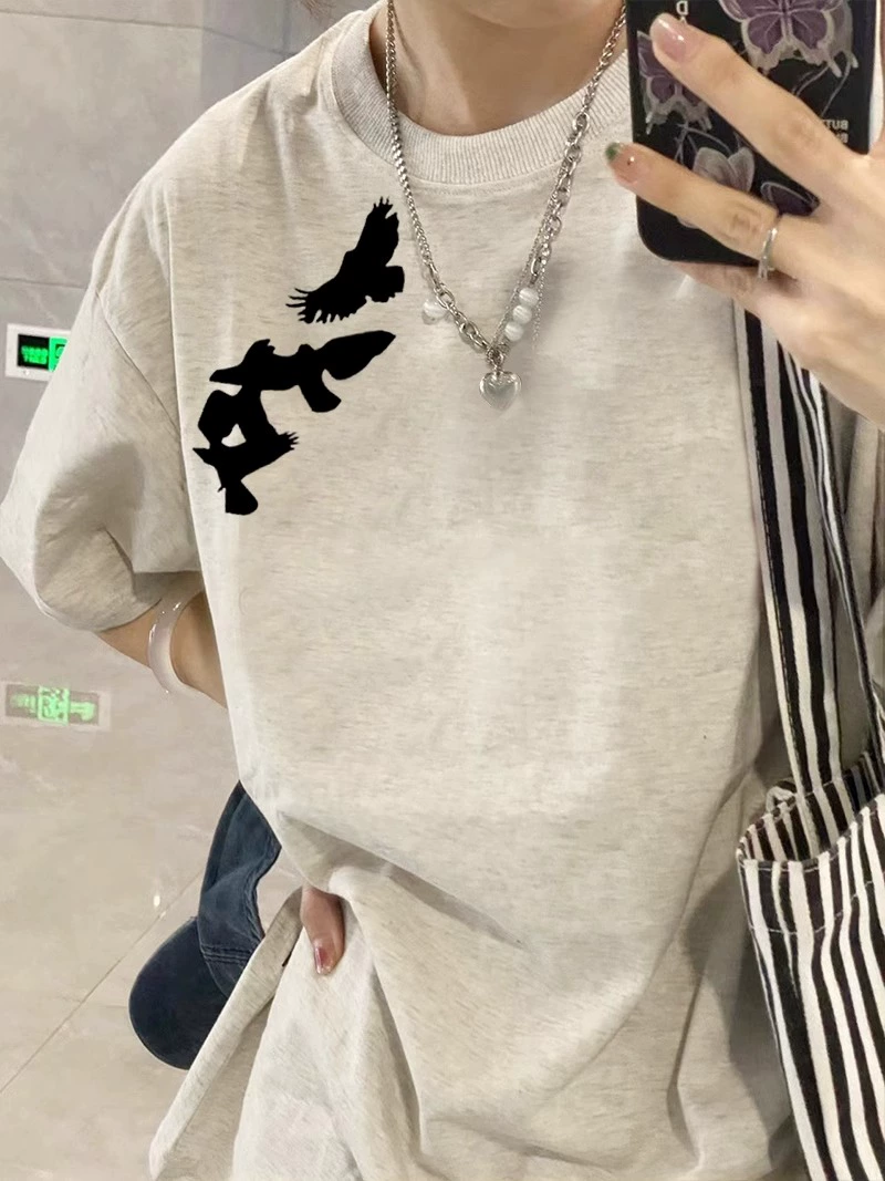 Women’s Fat MM Chic gray gray short short -sleeved T -shirt