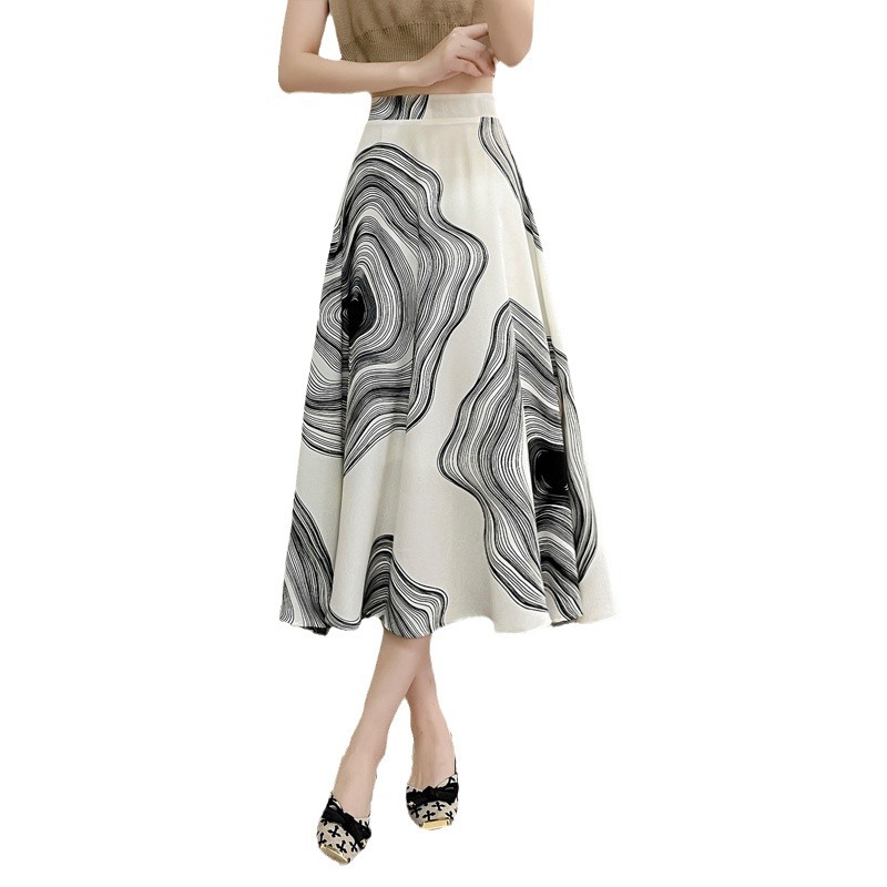 | nameOriginal | Women's Chiffon A- line Printed Skirt Summer 2024 New Style Elegant Loose Waist Slimming Mid-length Overskirt |