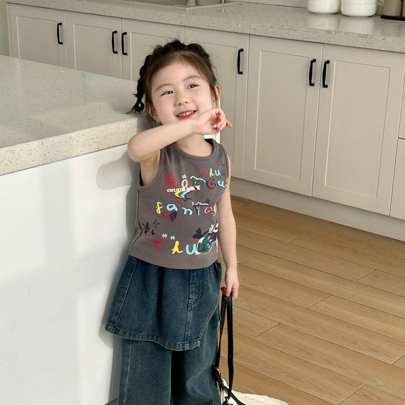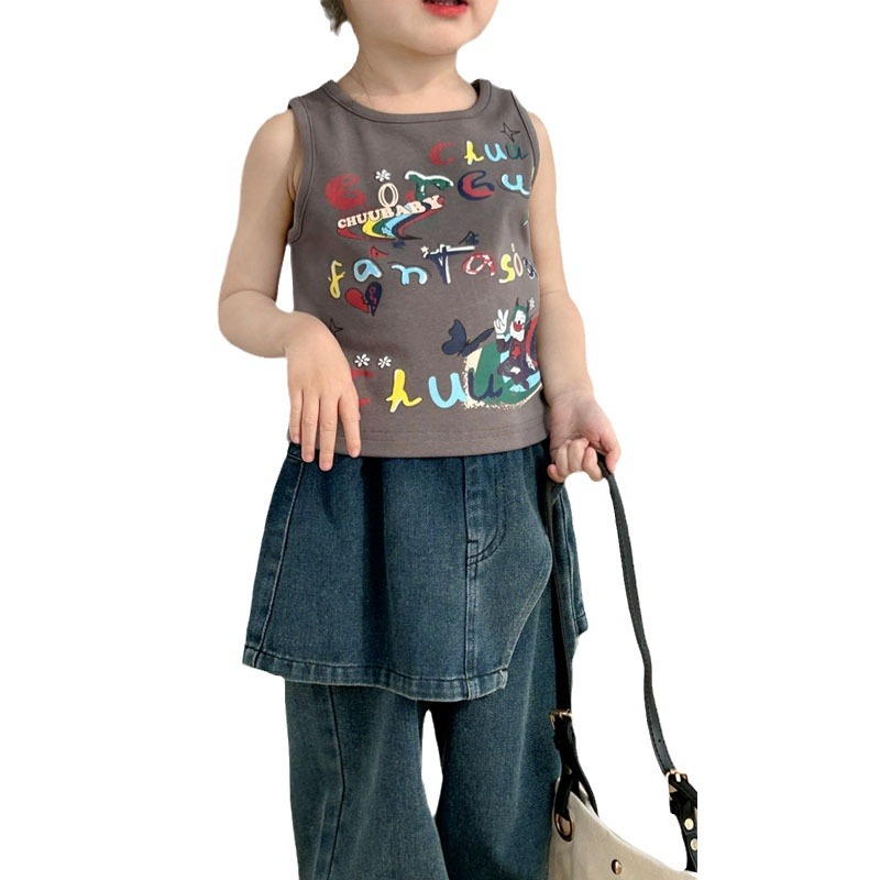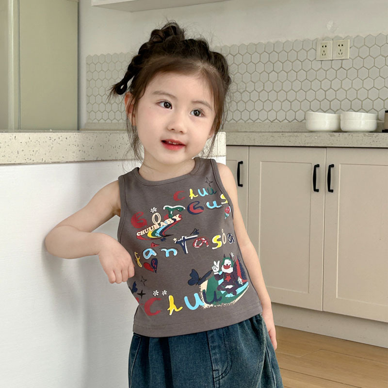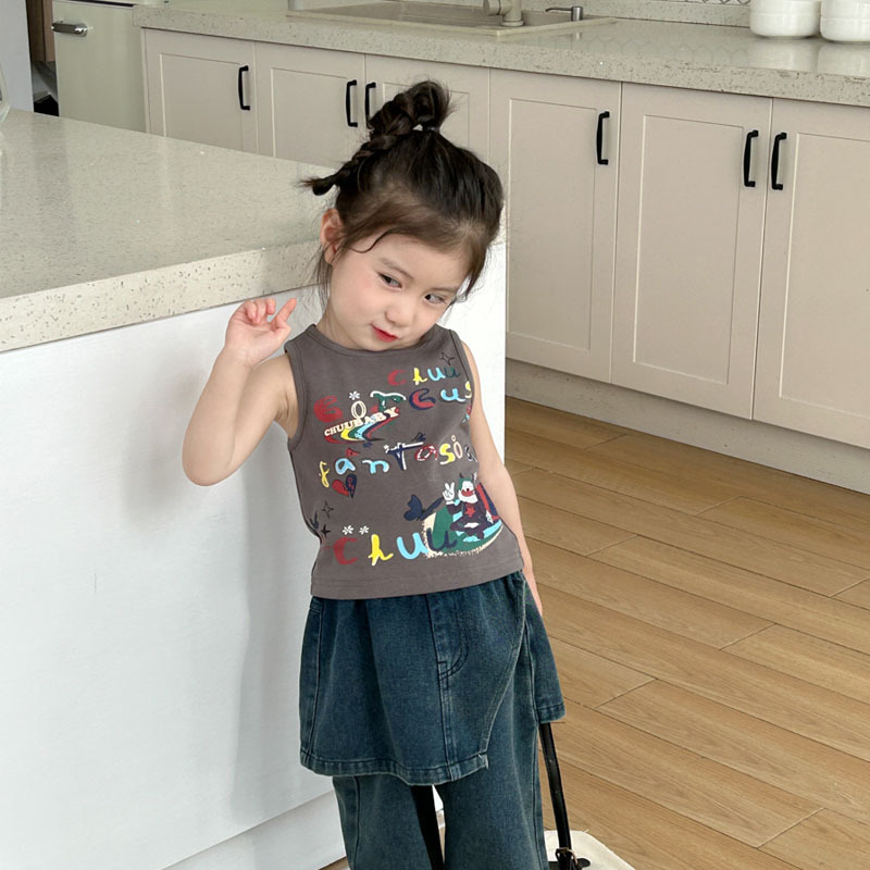 | nameOriginal | Women's Children's Wear Sleeveless T-Shirt Summer New Cartoon Baby Stylish Fashionable Top Cartoon Graffiti Print Vest |