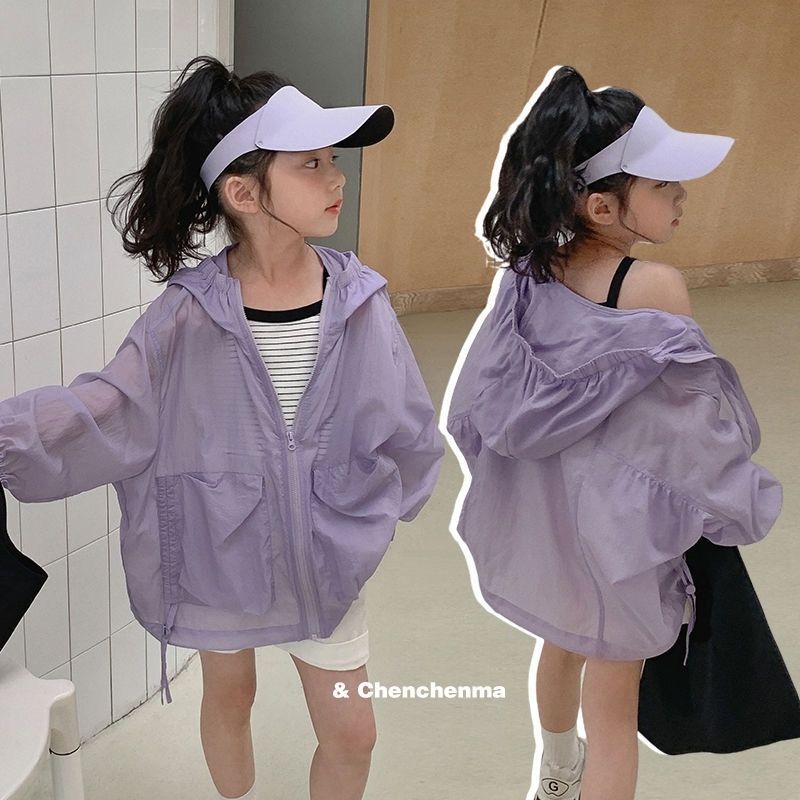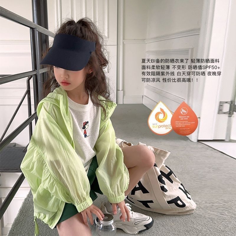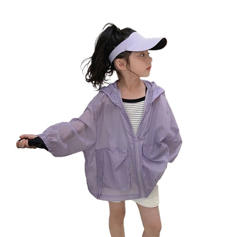 Women's Children's Wear Solid Color Lightweight Sunscreen Coat 2024 Summer New Children's UV Protection Sunscreen Coat Trendy Outer Wear