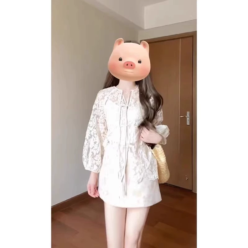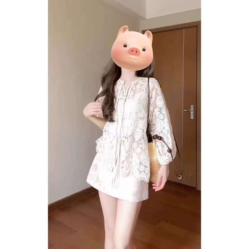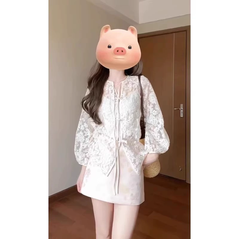 Women’s Chinese style hollow shirt jacquard two piece embroidery set