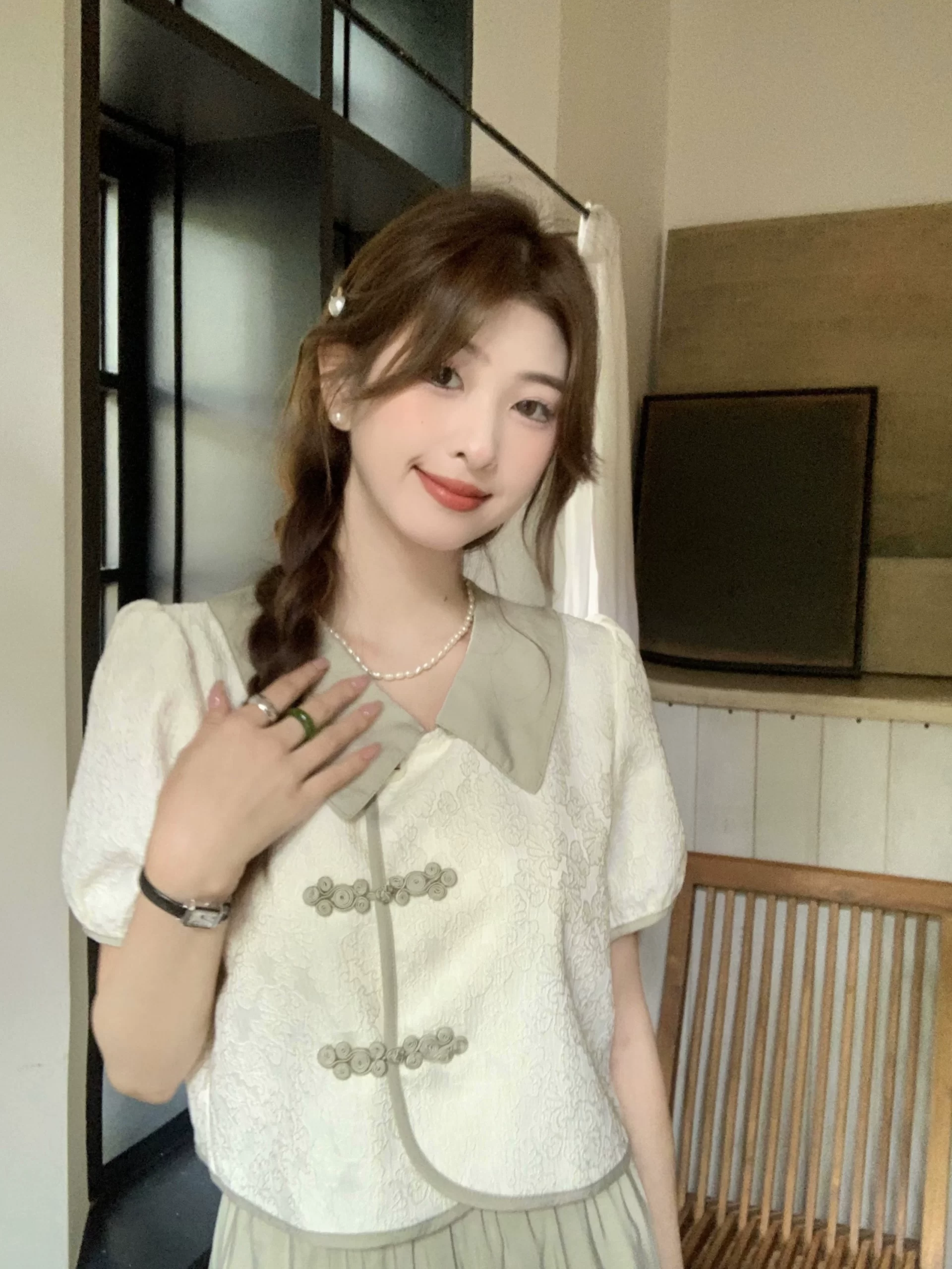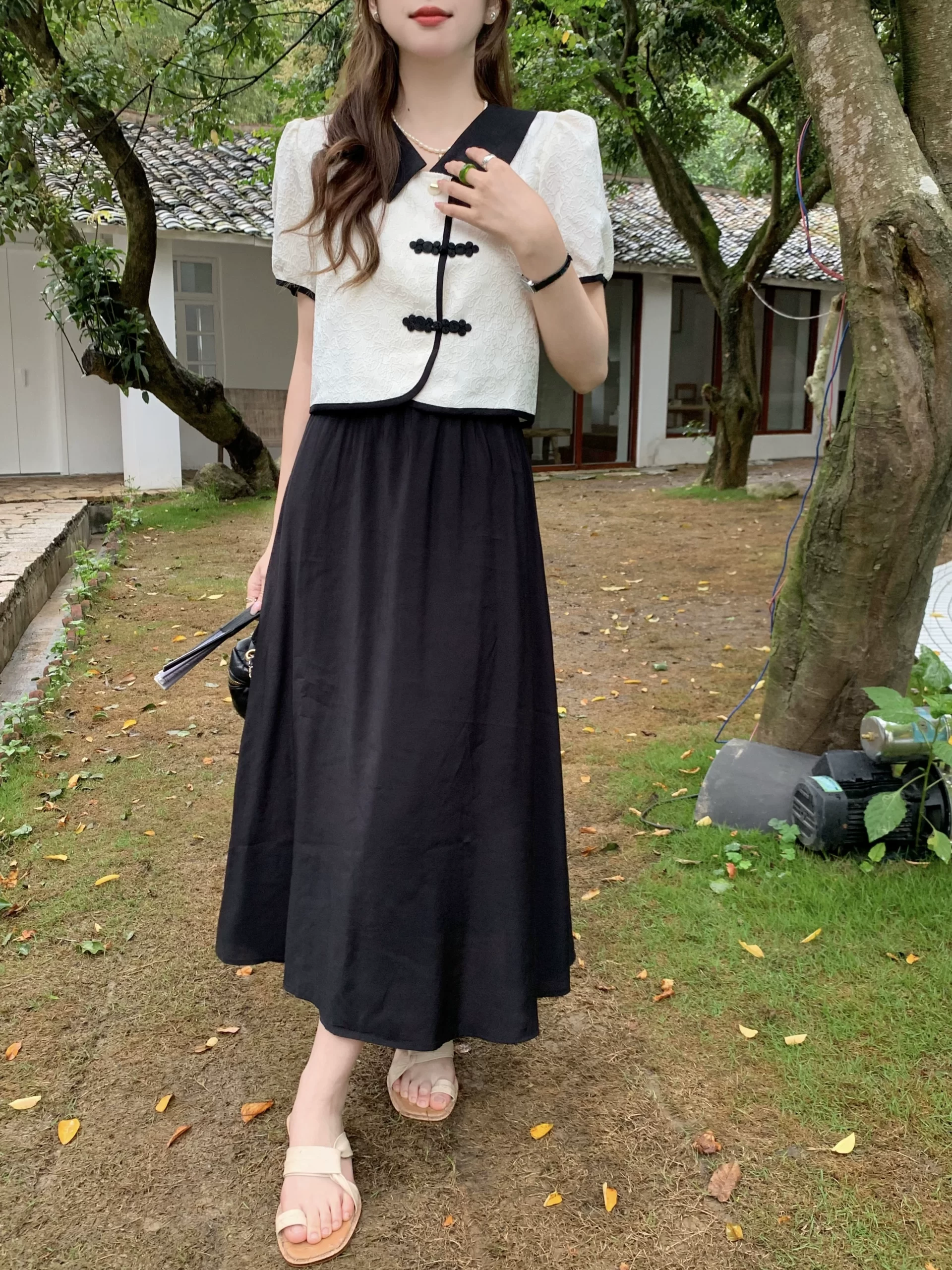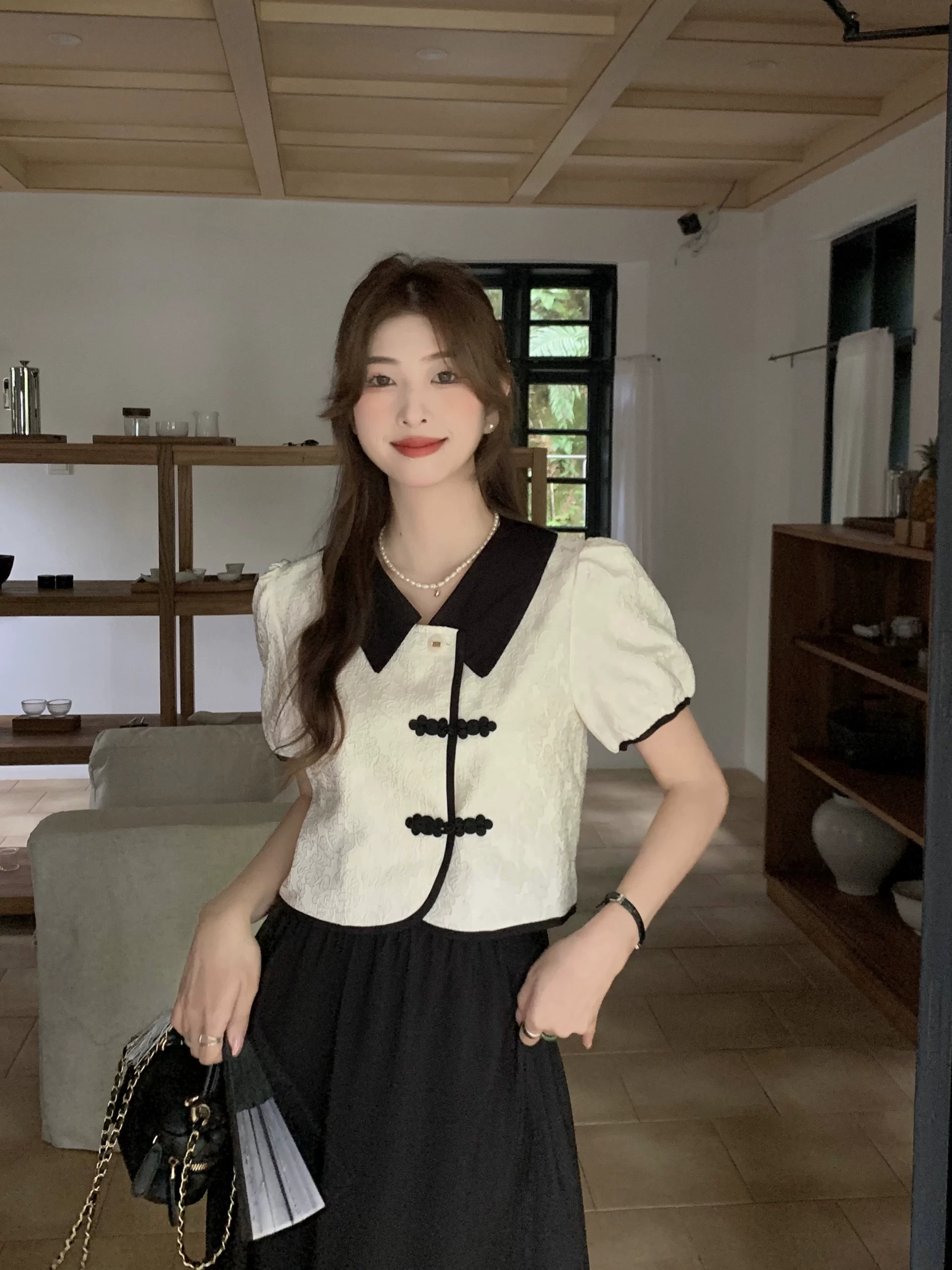 | nameOriginal | Women's Chinese Style Jacquard Contrast Color Puff Sleeves High Waist Button |
