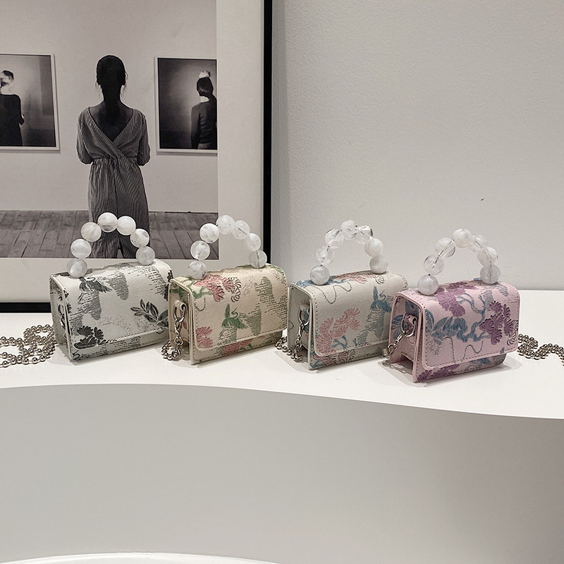 Women’s Chinese Style Small Square Bag Pearl Small Chanel Style Embroidery Advanced Shoulder Crossbody Portable Mini Lipstick Small Trendy Bag