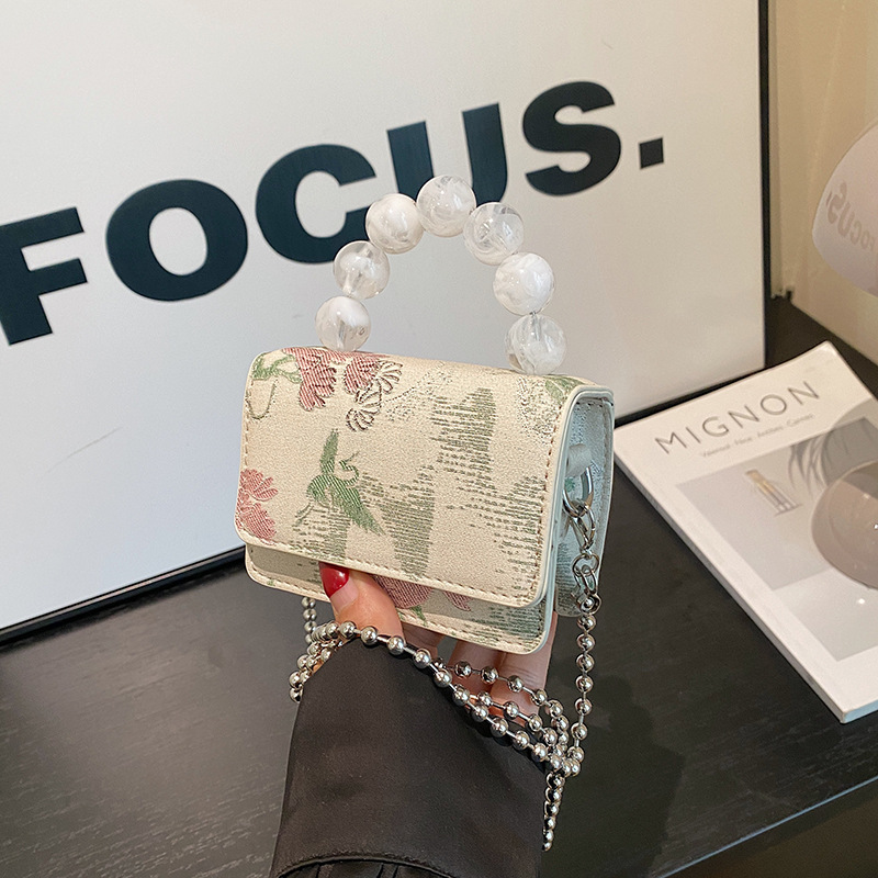Women's Chinese Style Small Square Bag Pearl Small Chanel Style Embroidery Advanced Shoulder Crossbody Portable Mini Lipstick Small Trendy Bag