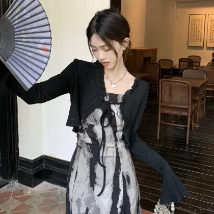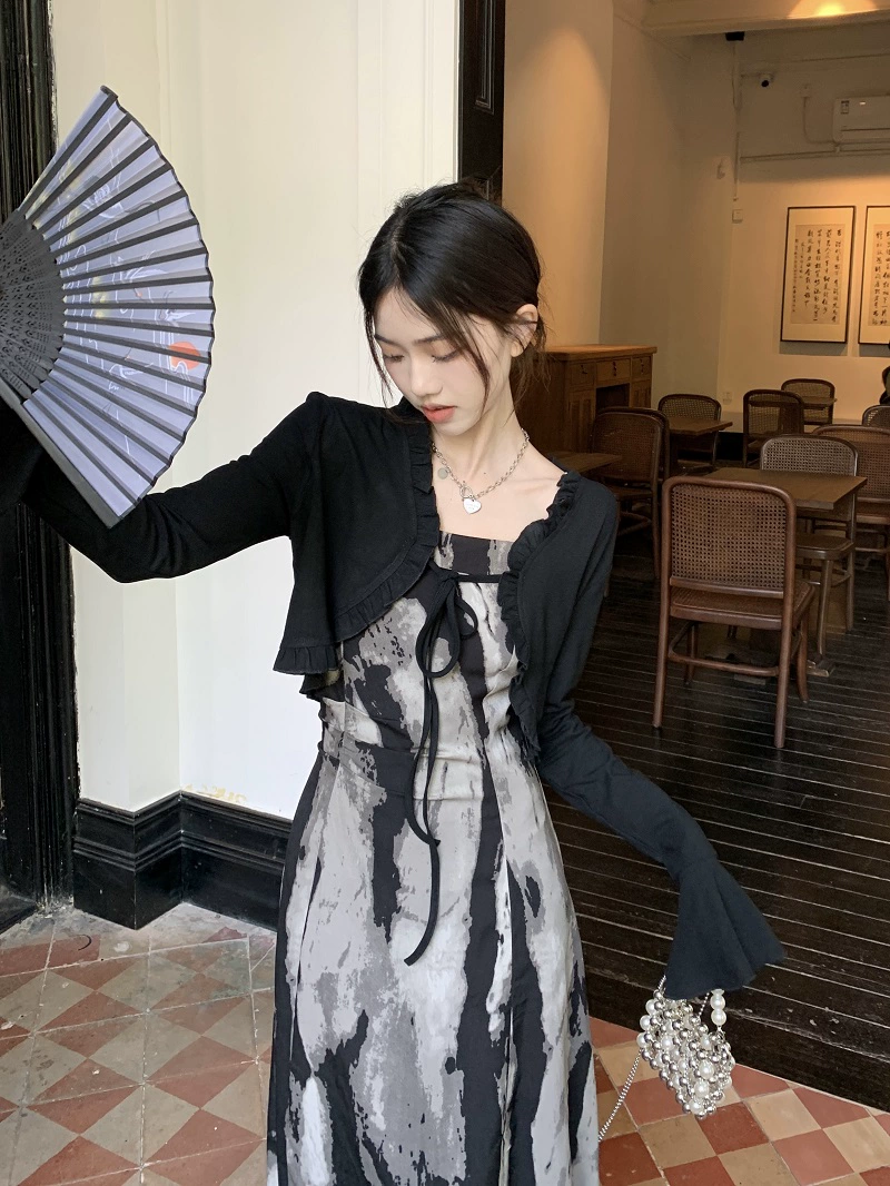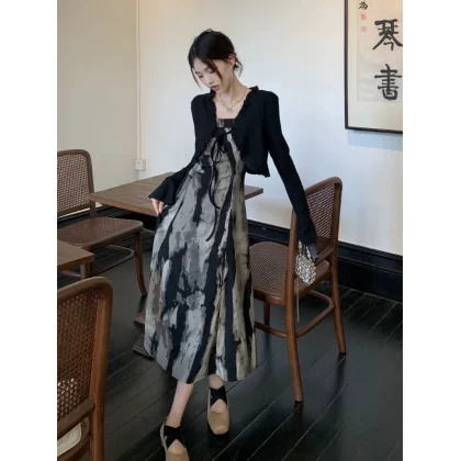 | nameOriginal | Women's Chinese-style suspender dress mid-length A-line ink |