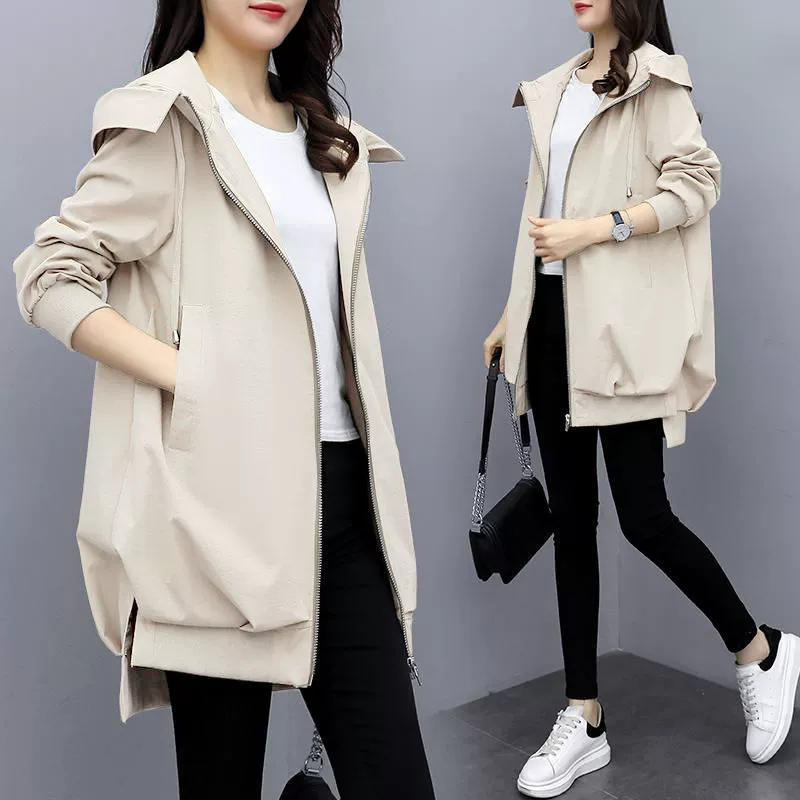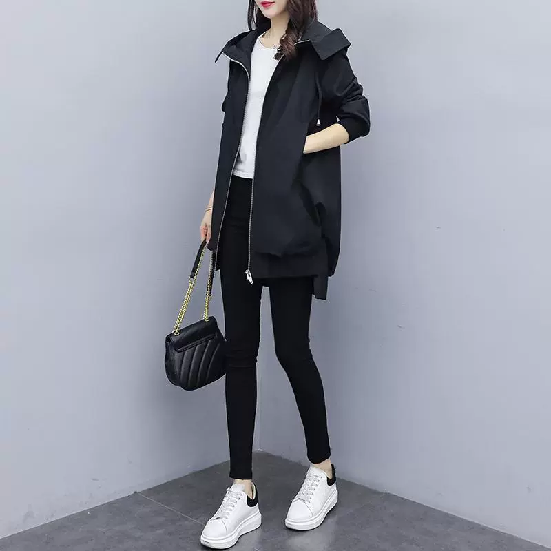 Women's chubby casual hooded mid-length windbreaker