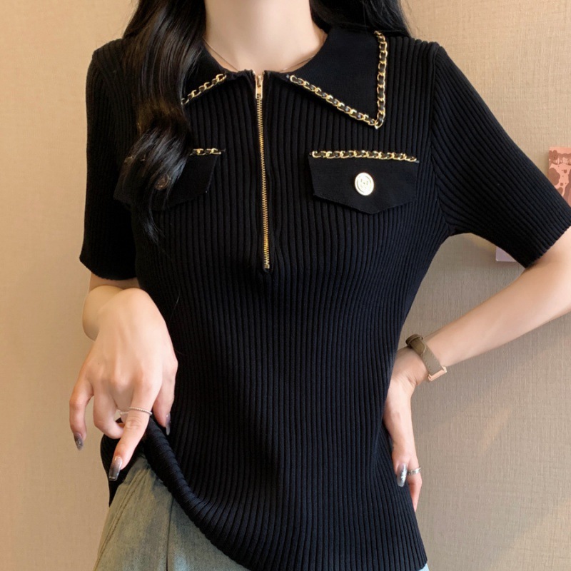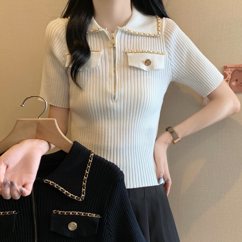 | nameOriginal | Women's clothing a generation of small fragrant wind jacket real shot 2024 summer new turn craft knitted fir thin ice silk T-shirt |