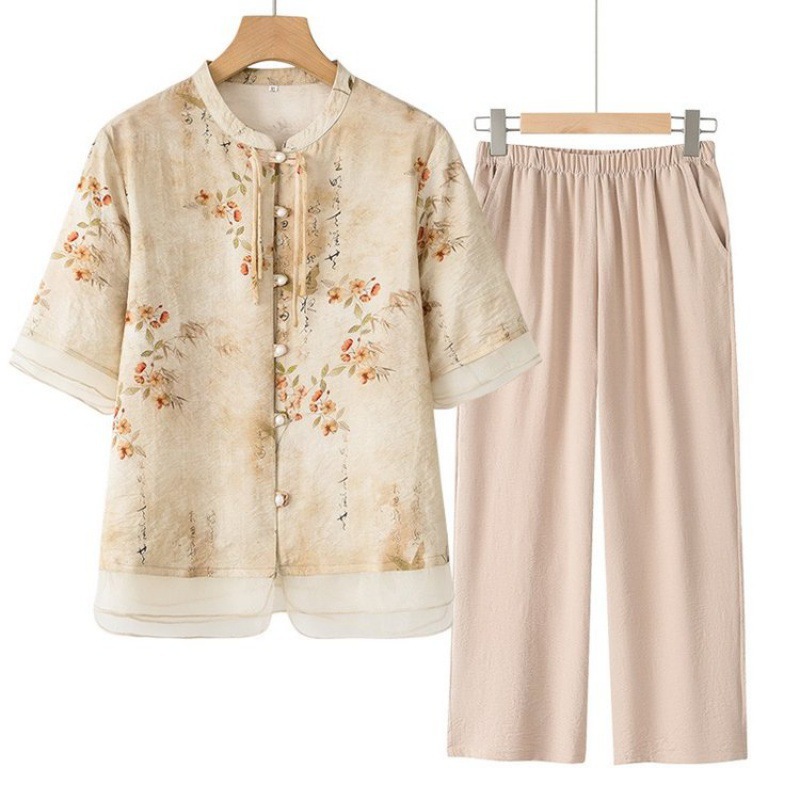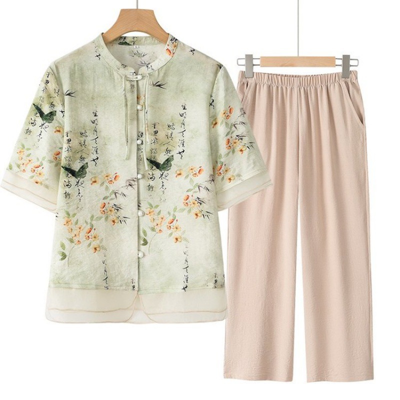 | nameOriginal | Women's Clothing for the Elderly Summer New Chinese Style Shirt Loose Top Grandma Two-piece Suit Mother Chinese Style Thin Shirt |