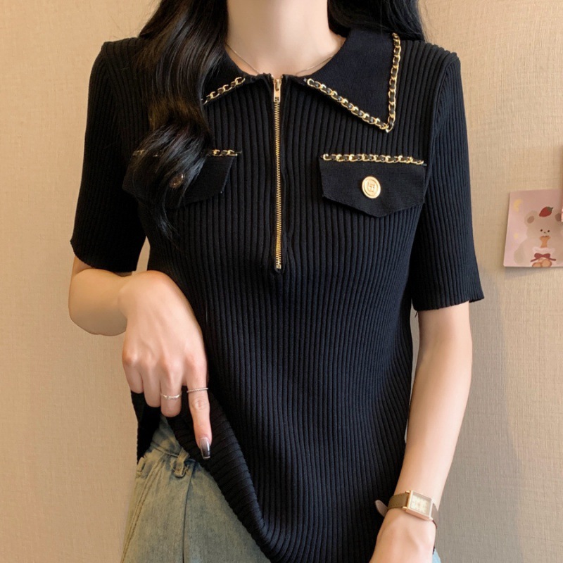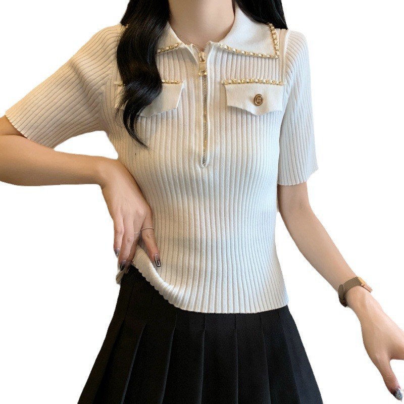 | nameOriginal | Women's Clothing Real Shot 2024 Summer New Laps Small Chanel Style Knitted Shirt Fashionable Short Sleeve Women's Thin Ice Silk T-shirt |