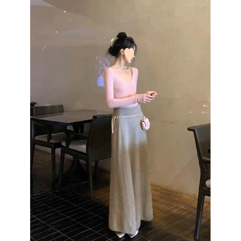 | nameOriginal | Women's clothing suit light luxury high-grade Korean style base Light mature skirt long temperament two-piece French retro royal sister |