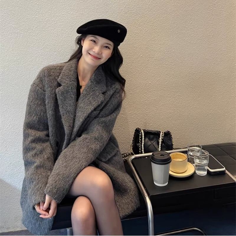 | nameOriginal | Women's coat 2023 Gray new suit woolen coat thickened women's autumn and winter small short |