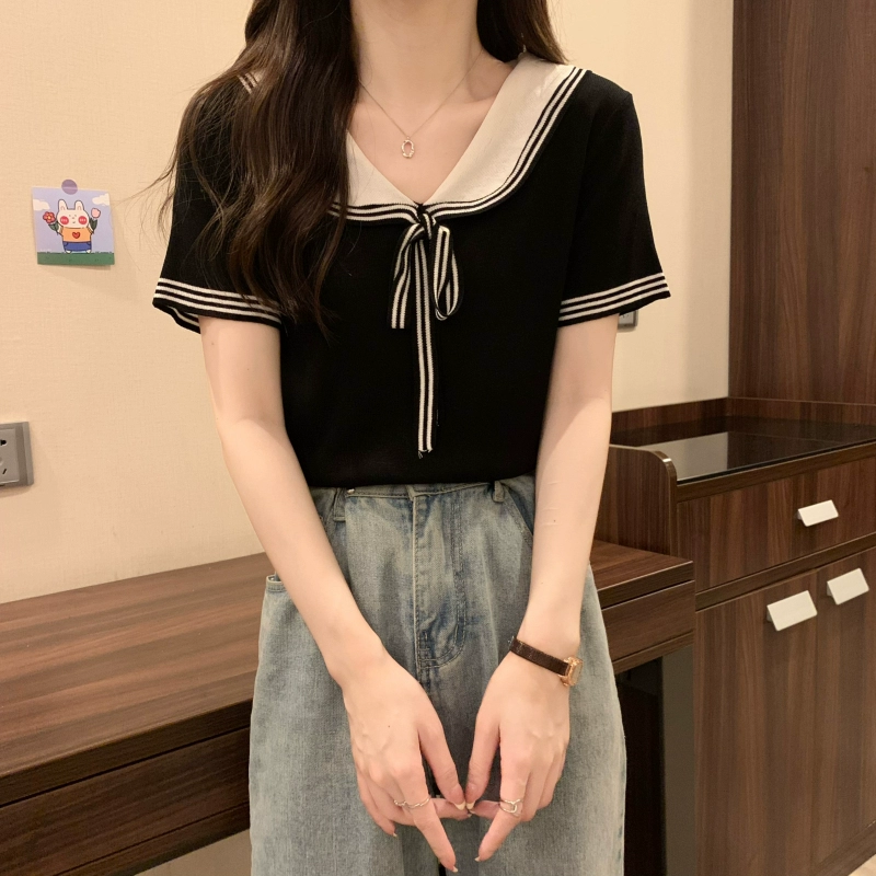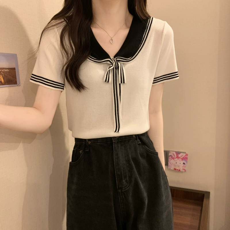 | nameOriginal | Women's college style contrast color summer right shoulder slimming T-shirt |