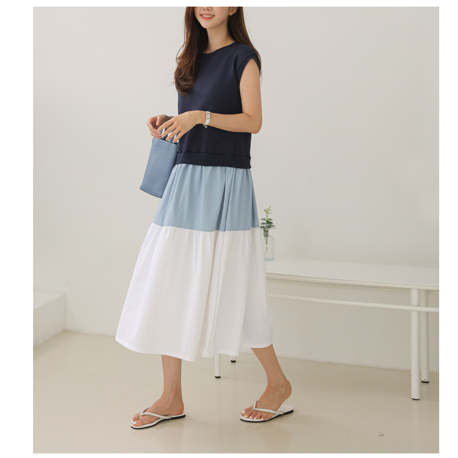 | nameOriginal | Women's Color Block Dress Simple Round Neck Short Sleeve T-Shirt |
