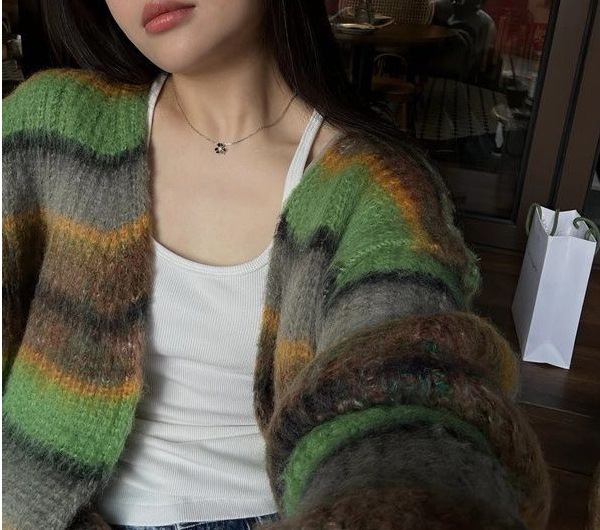 | nameOriginal | Women's colorful outerwear sweater autumn and winter New Korean style retro loose lazy style design knitted cardigan top |