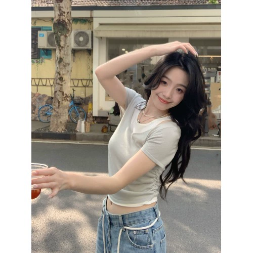 | nameOriginal | Women's Contrast Color Short Sleeve Summer Slim Top Fake Two Piece |