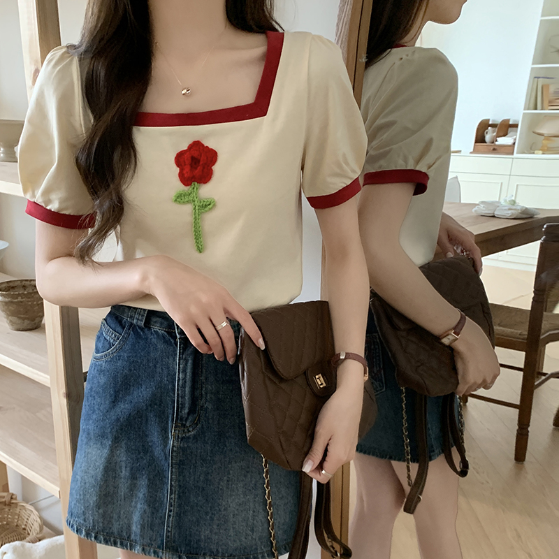 | nameOriginal | Women's Contrast Color Square Neck Slimming Short Sleeve T-Shirt |