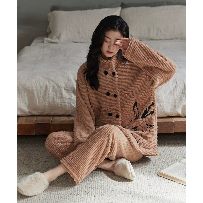 | nameOriginal | Women's coral velvet Chinese style rabbit embroidered stand collar pajamas |